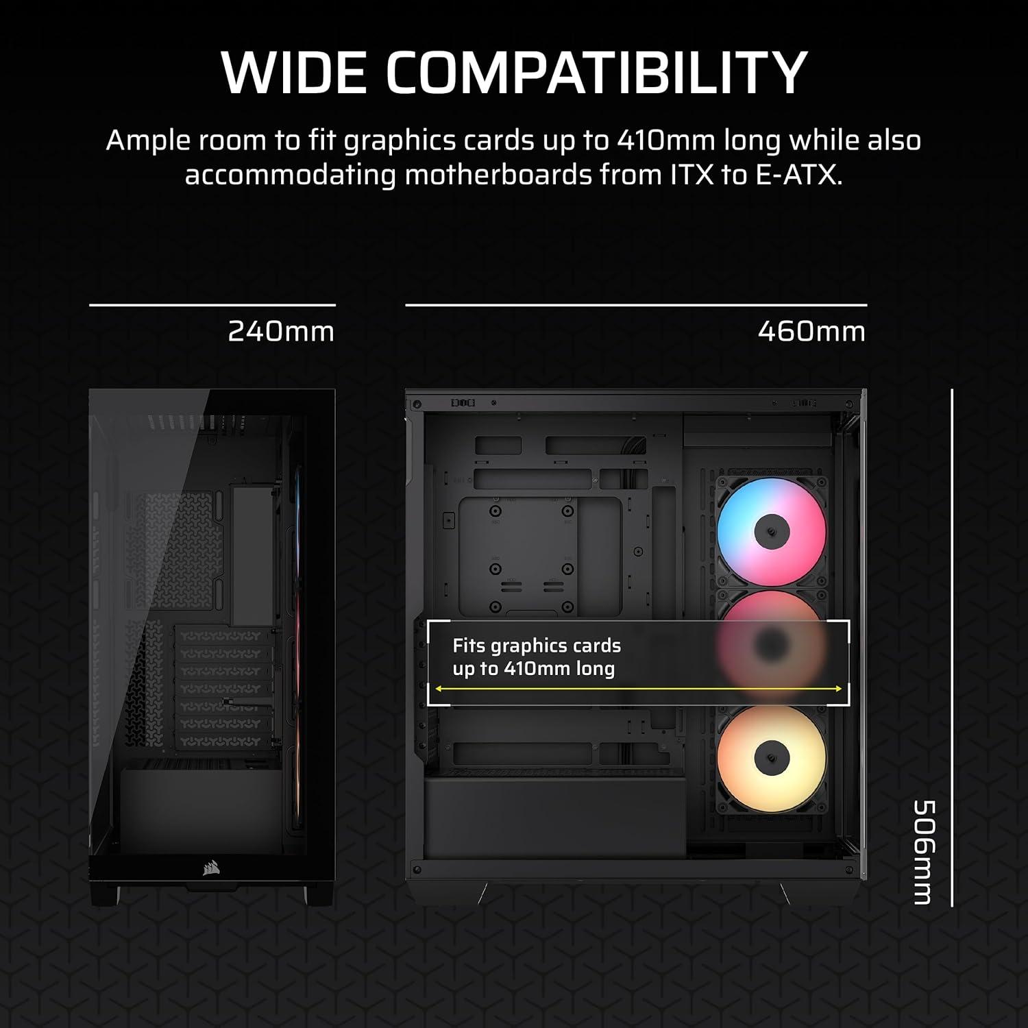 A Great Build with a Great View: The 3500X has all the cooling benefits and essential features you need to build an amazing PC, supporting motherboard form-factors from Mini-ITX to EATX, with a wraparound glass aesthetic to give you the view to match.