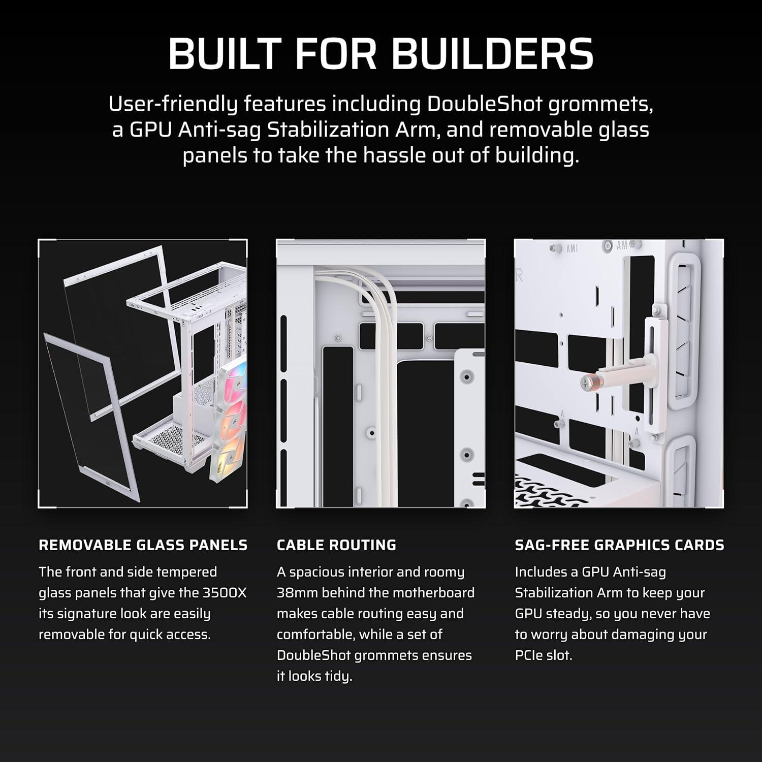 CORSAIR 3500X RS-R ARGB Mid-Tower PC Case – 3X Pre-Installed RS120-R ARGB Fans, GPU Anti-Sag Arm, Fits up to 10x 120mm Fans, Reverse Connection Motherboard Compatible – Black(White)