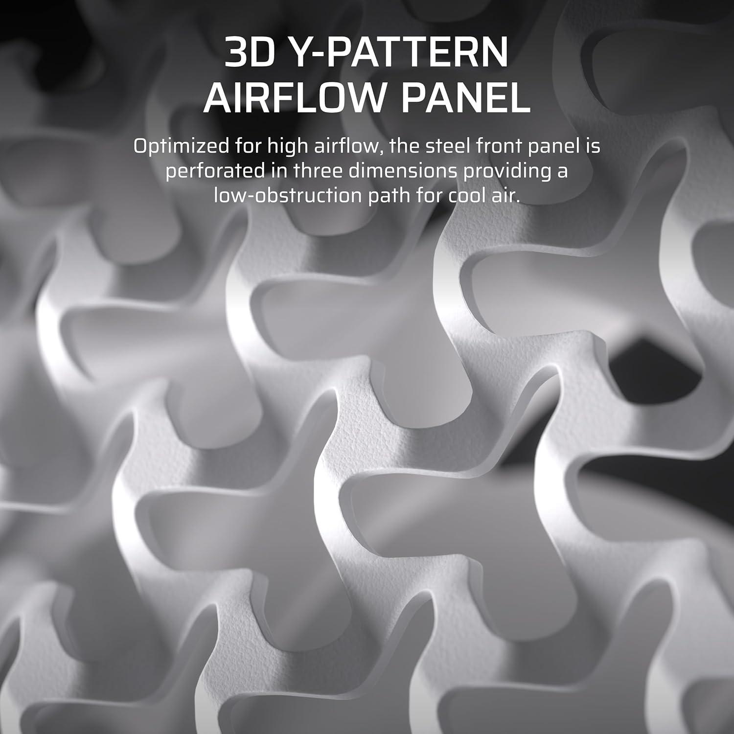 3D Y-Pattern Airflow Panel – Optimized for high airflow and minimal restriction, the steel front panel is perforated in three dimensions with a Y-pattern that provides a low-obstruction path for cool air