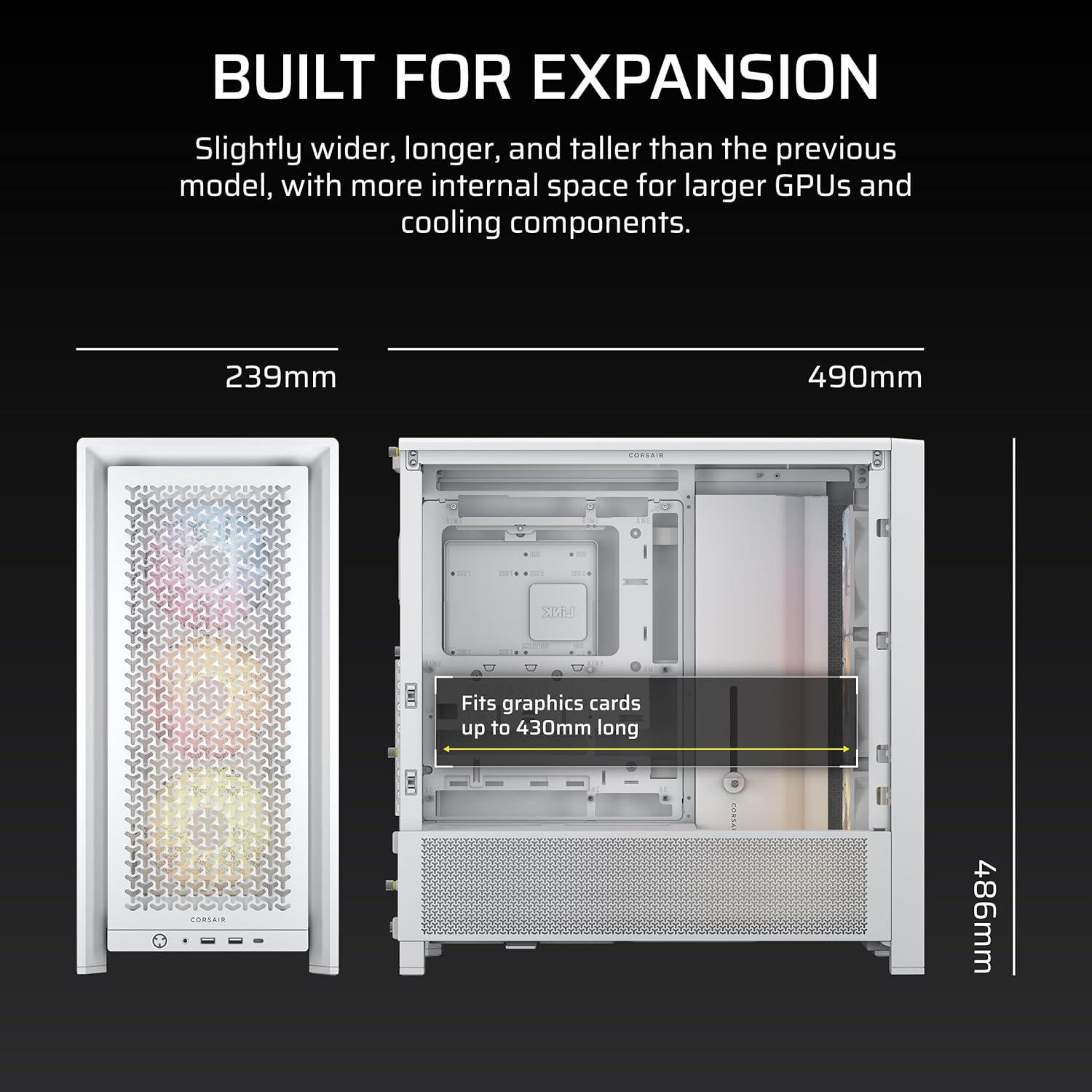 CORSAIR 4000D RS ARGB Frame Modular Mid-Tower ATX PC Case – High Airflow, 3X Pre-Installed RS ARGB Fans, InfiniRail Fan Mounting System, ASUS BTF, MSI Project Zero, Gigabyte Project Stealth – White(White)