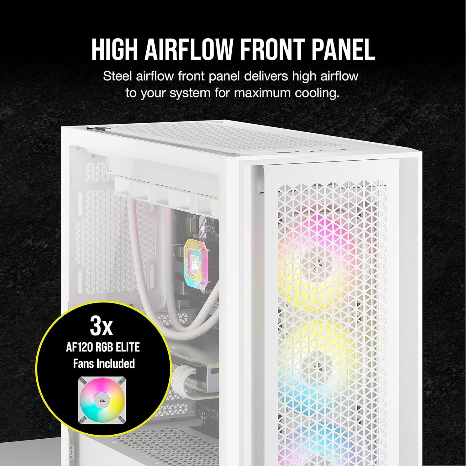 Clean and Cool: The award-winning 5000D RGB AIRFLOW case provides amazing out-of-the-box cooling and RGB lighting for your next build, with three AF120 RGB ELITE PWM fans and an iCUE Lighting Node PRO RGB lighting controller included.