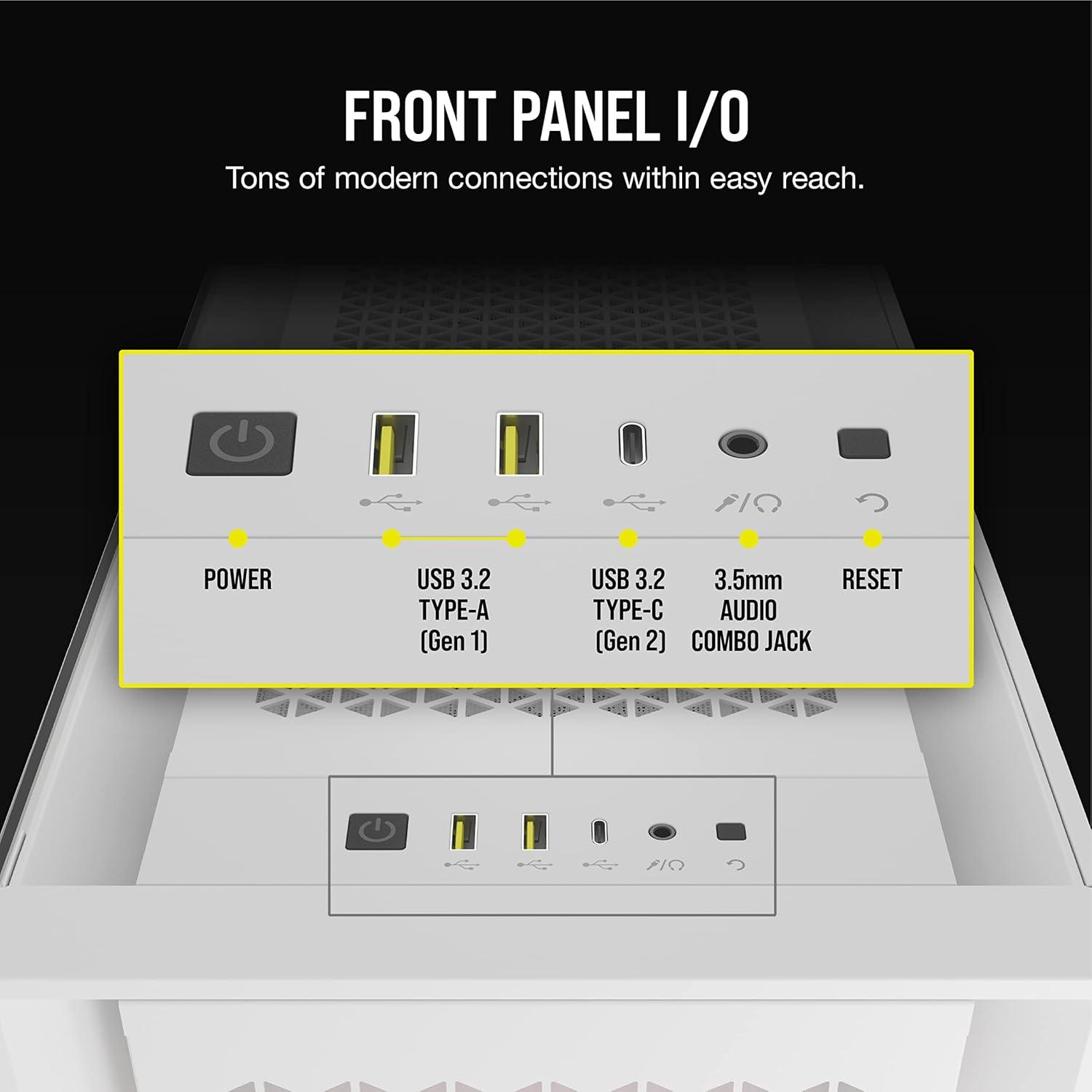 Modern Front Panel I/O: Puts your connections within easy reach, including a USB 3.2 Gen 2 Type-C port, 2x USB 3.2 Gen 1 Type A ports, and a combination audio/microphone jack.
