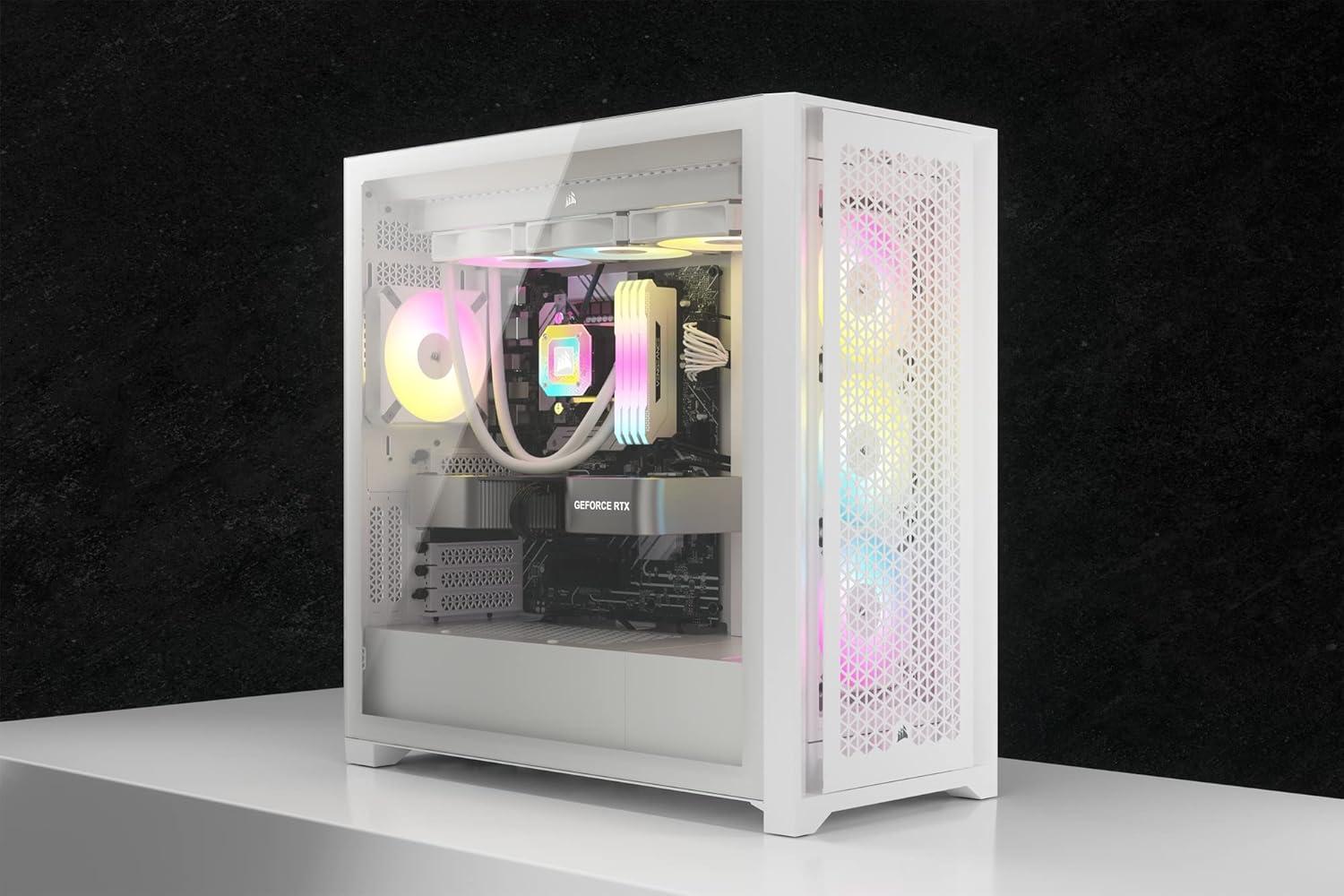 Corsair 5000D Airflow Mid-Tower Case – 3 RGB Fans – Lighting Controller – High-Airflow Design – RapidRoute Cable Management – True White(White)