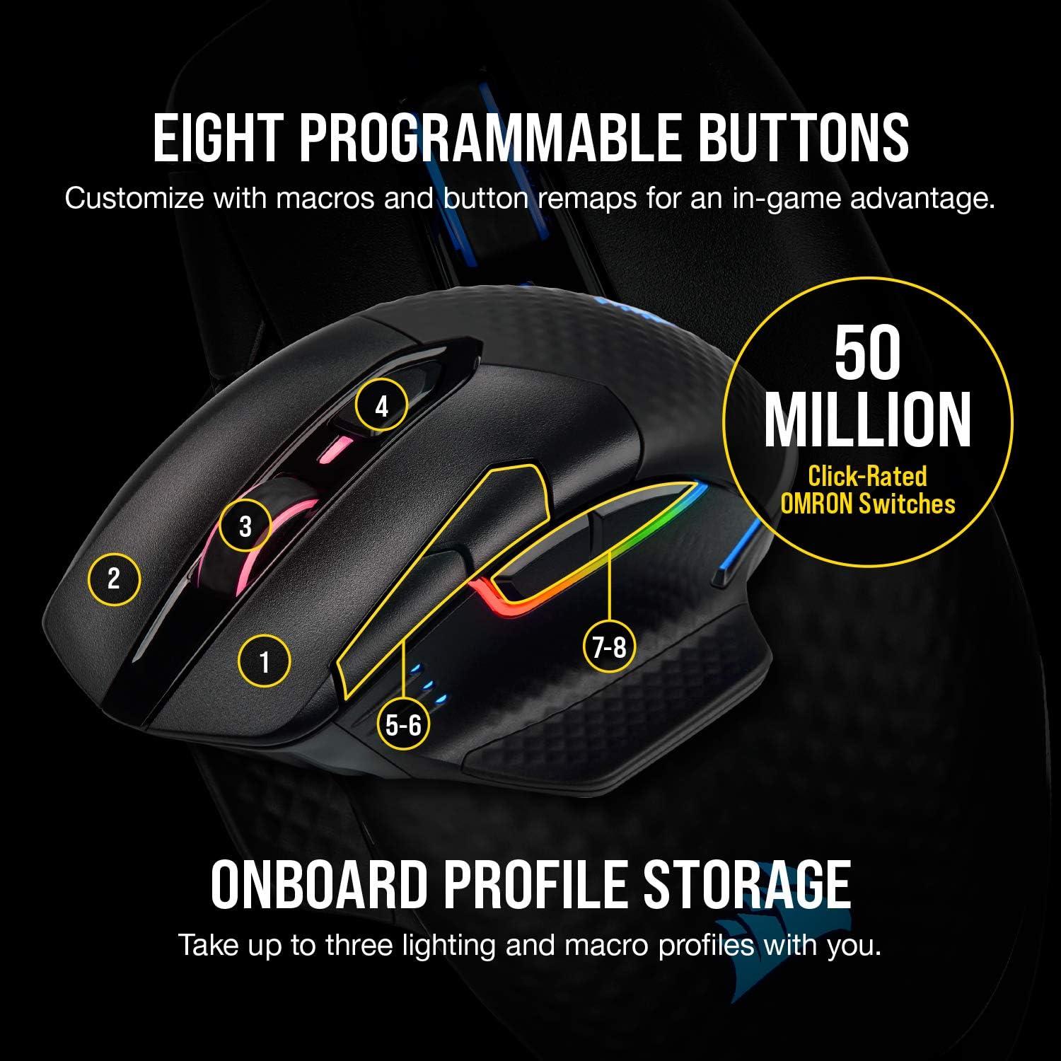Corsair Dark CORE RGB PRO SE Wireless FPS/MOBA Gaming Mouse with Qi Charging – 18,000 DPI – 8 Programmable Buttons – Sub-1ms Wireless – iCUE Compatible – PC, Mac, PS5, PS4, Xbox – Black