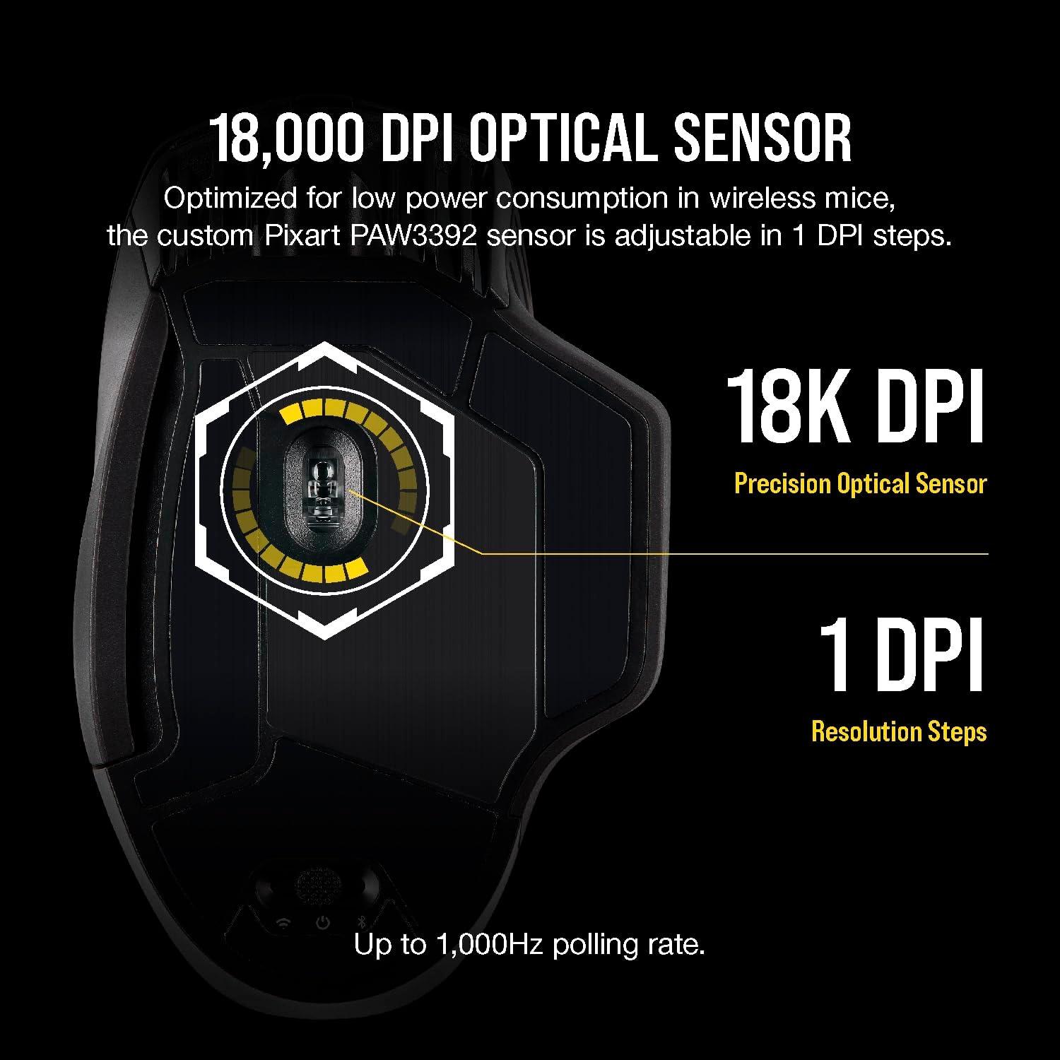 Wireless-Optimized 18,000 DPI Optical Sensor: Play with pinpoint accuracy and precision thanks to a custom PixArt PAW3392 optical sensor, optimized for extremely low power consumption and customisable in 1 DPI resolution steps