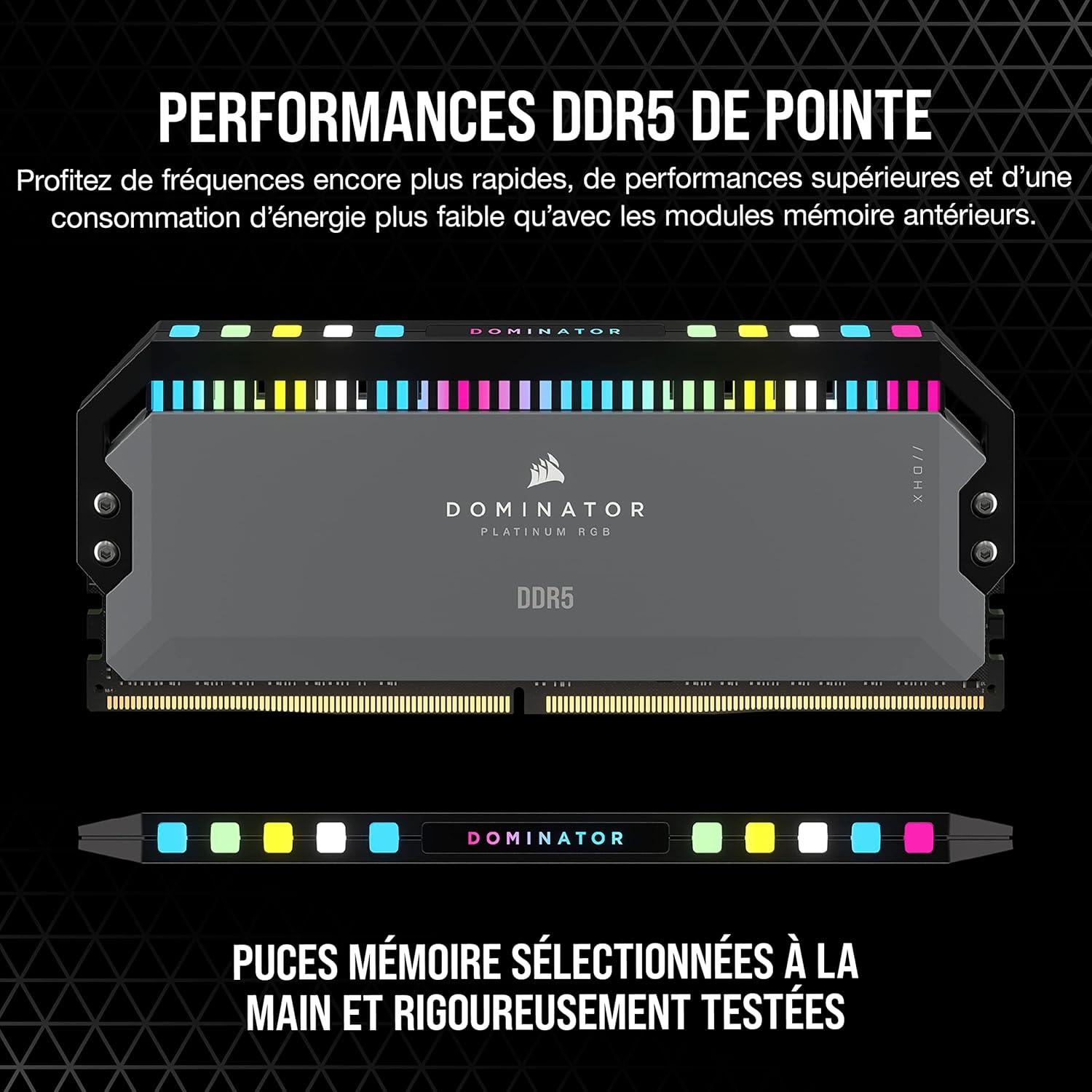CORSAIR Dominator Platinum RGB DDR5 64GB (2x32GB) DDR5 6000MHz CL30 AMD Expo Intel XMP iCUE Compatible Computer Memory – Gray (CMT64GX5M2B6000Z30)(64GB (2x32GB))