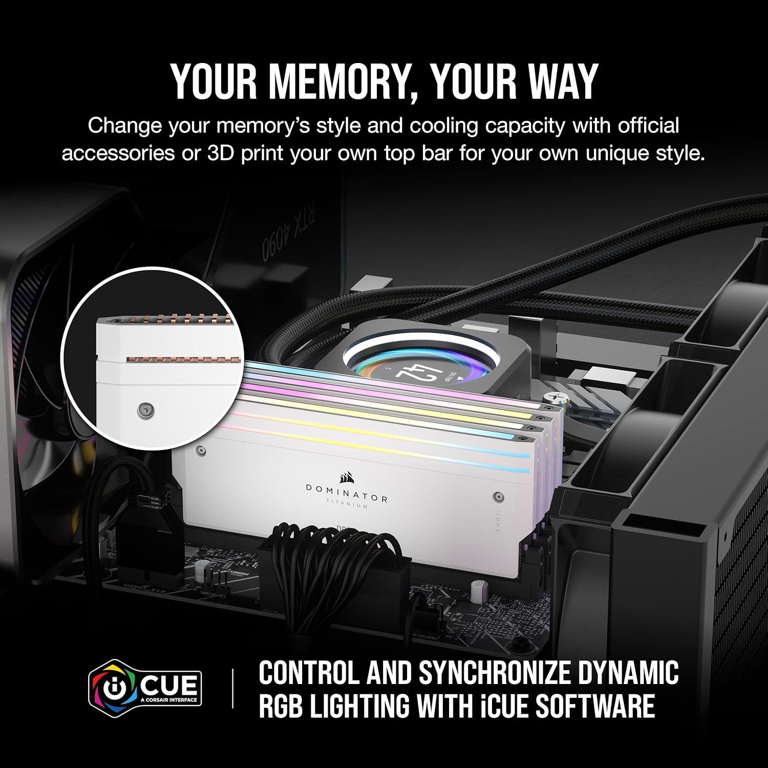 CORSAIR Dominator Titanium RGB DDR5 RAM 64GB (4x16GB) DDR5 6000MHz CL36 Intel XMP iCUE Compatible Computer Memory – Black (CMP64GX5M4B6000C36)(White)