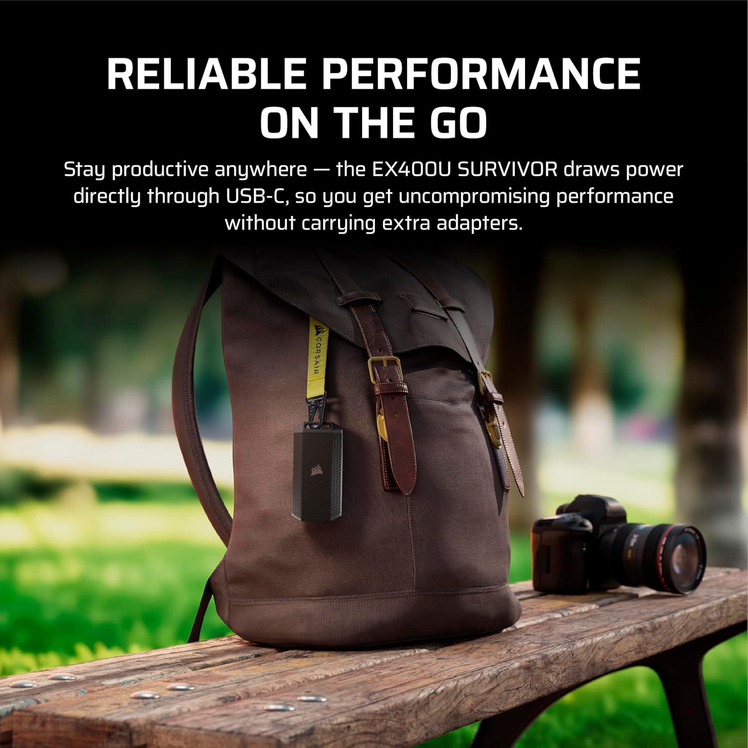 Corsair EX400U Survivor 4TB USB4 External SSD – Up to 4000 MB/s, IP55 Rugged Drive, Plug & Play for PC, Mac & iPad – Black(4TB)