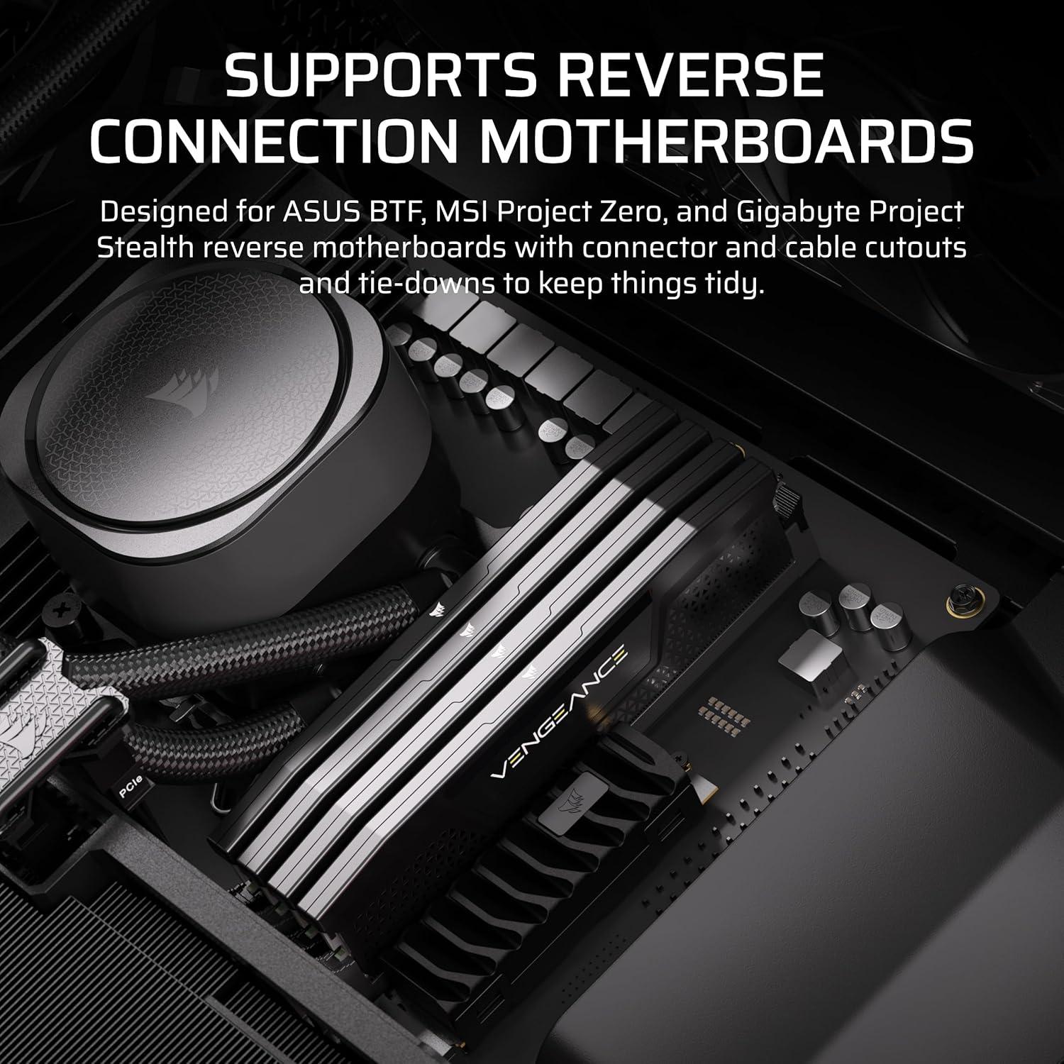 CORSAIR Frame 5000D RS Modular High Airflow Mid-Tower PC Case – 4X Pre-Installed RS Fans, InfiniRail™ Fan Mounting System, GPU Anti-Sag, ASUS BTF, MSI Project Zero, Gigabyte Project Stealth – Black