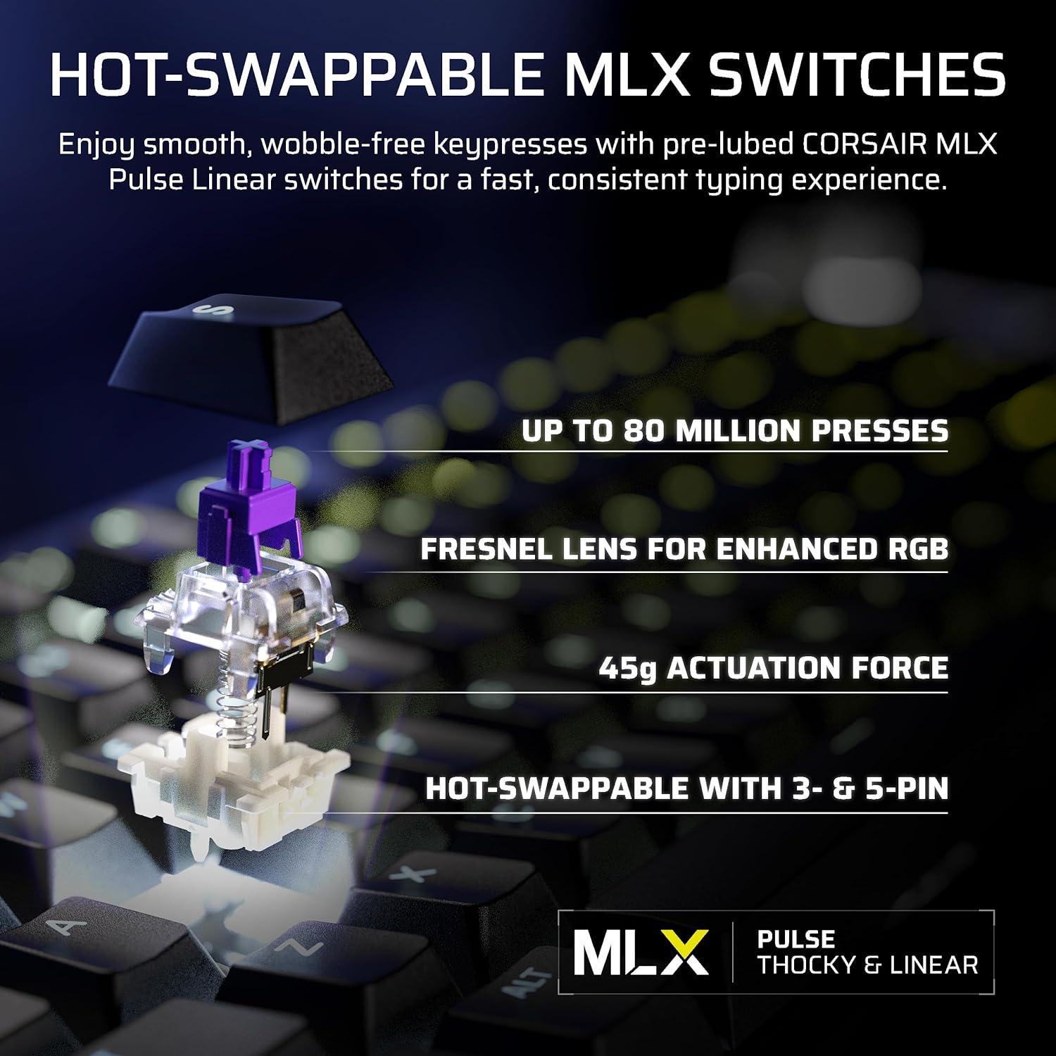 Corsair Galleon 100 SD RGB Mechanical Wired Gaming Keyboard – QWERTY US, Stream Deck-Integrated, Pre-Lubed MLX Pulse Thocky Hotswappable PBT Double-Shot Switches, FlashTap SOCD, 8,000Hz – Black