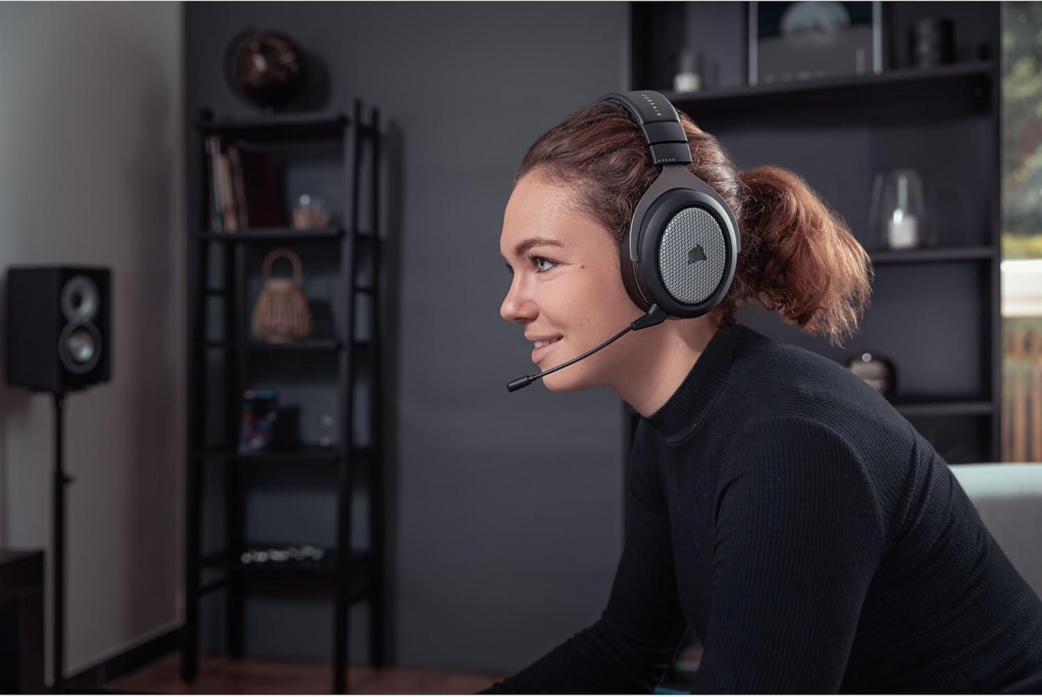 Corsair HS70 PRO Wireless Gaming Headset – 7.1 Surround Sound – Detachable Uni-Directional Microphone – Up to 40ft Range – iCUE Compatible – PC, Mac, PS5, PS4 – Carbon(HS75)