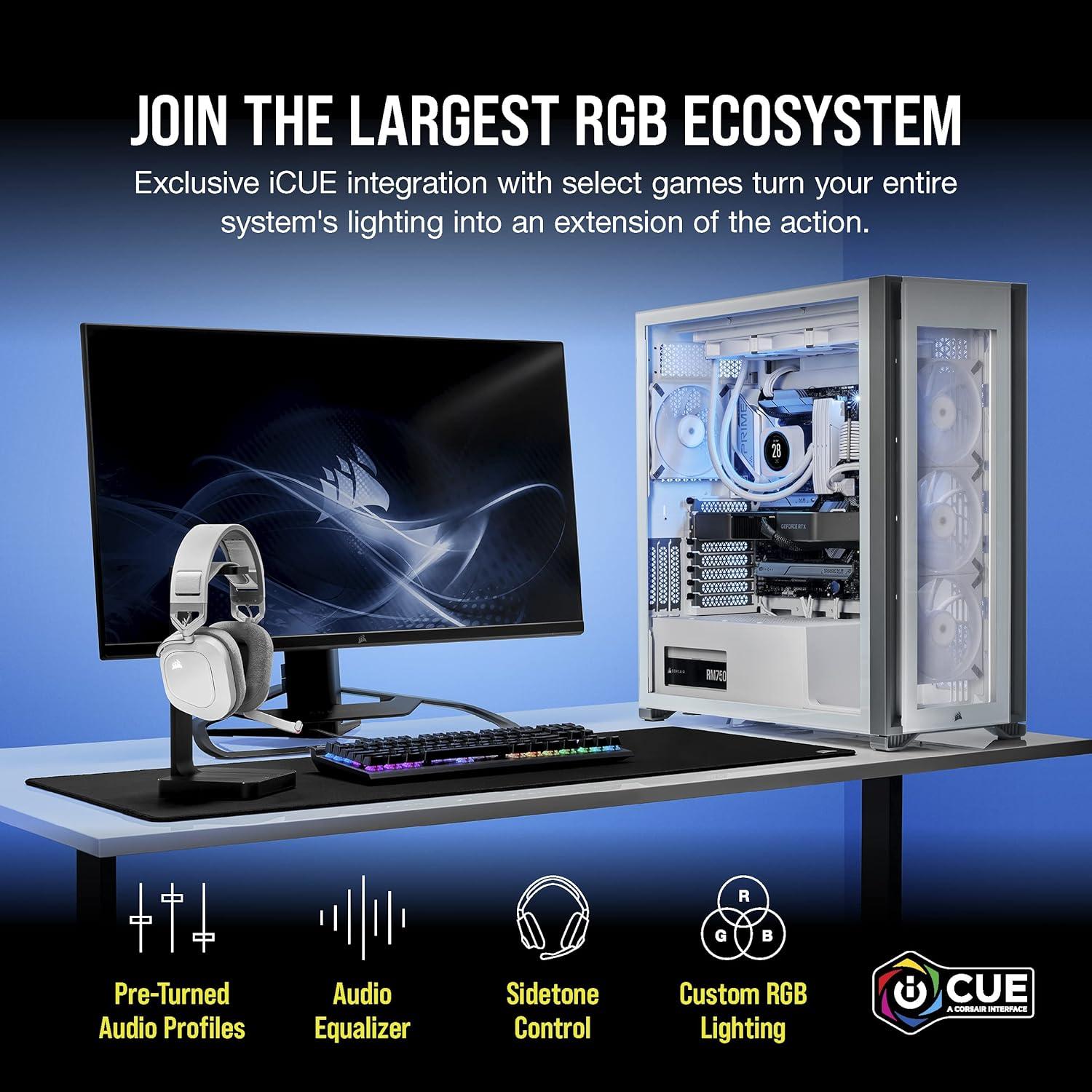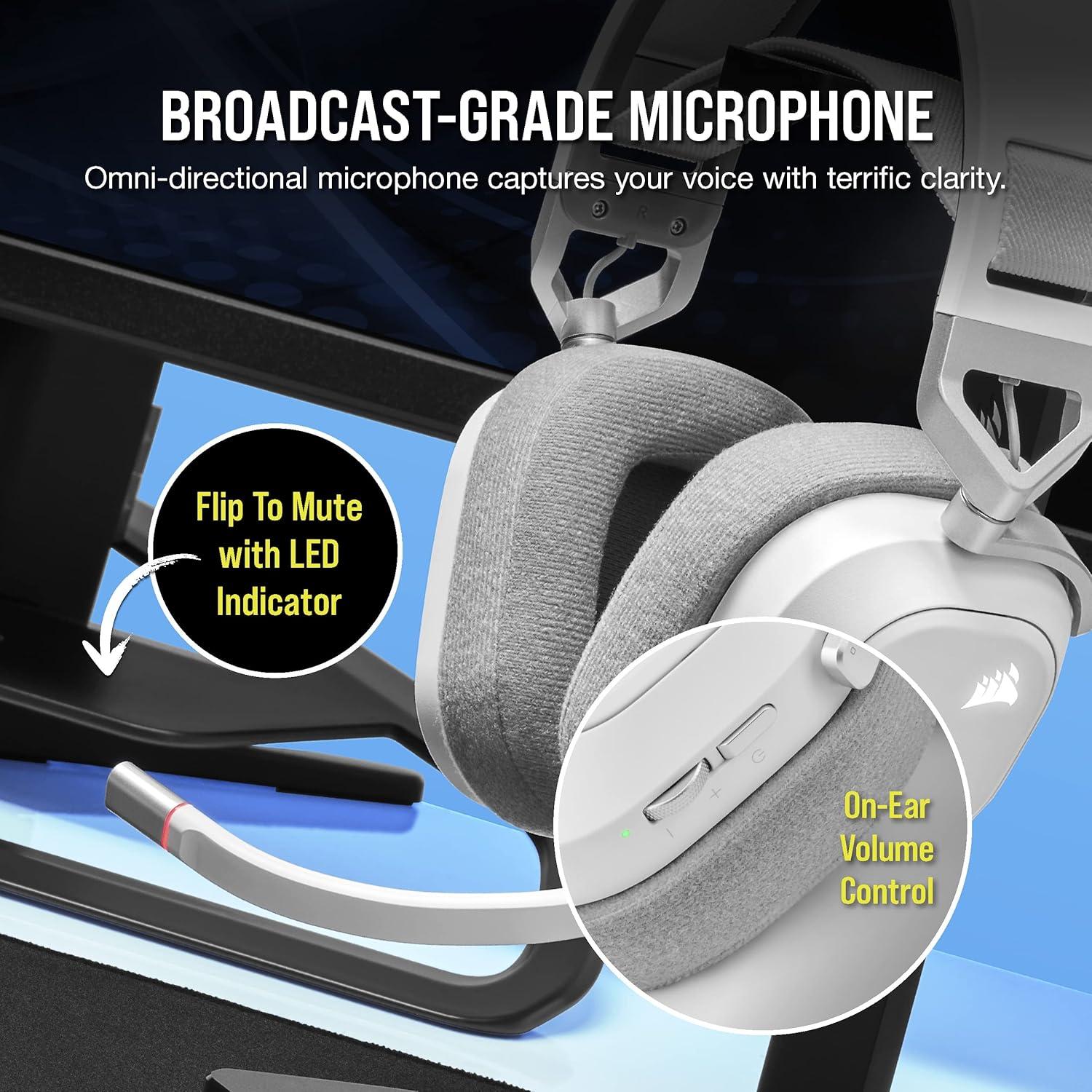 Corsair HS80 RGB Wireless Multiplatform Gaming Headset – Dolby Atmos – Lightweight Comfort Design – Broadcast Quality Microphone – iCUE Compatible – PC, Mac, PS5, PS4 – Black(White)