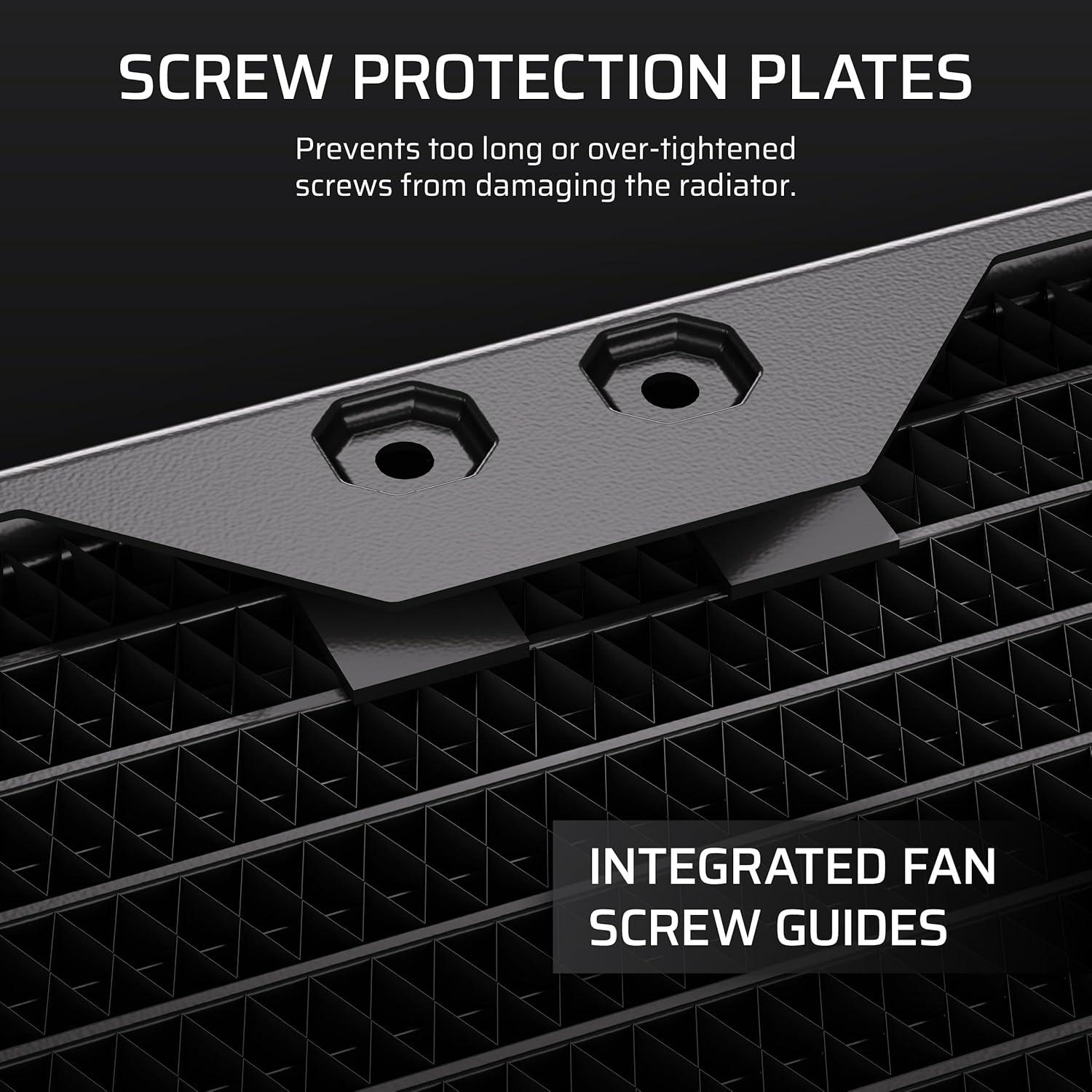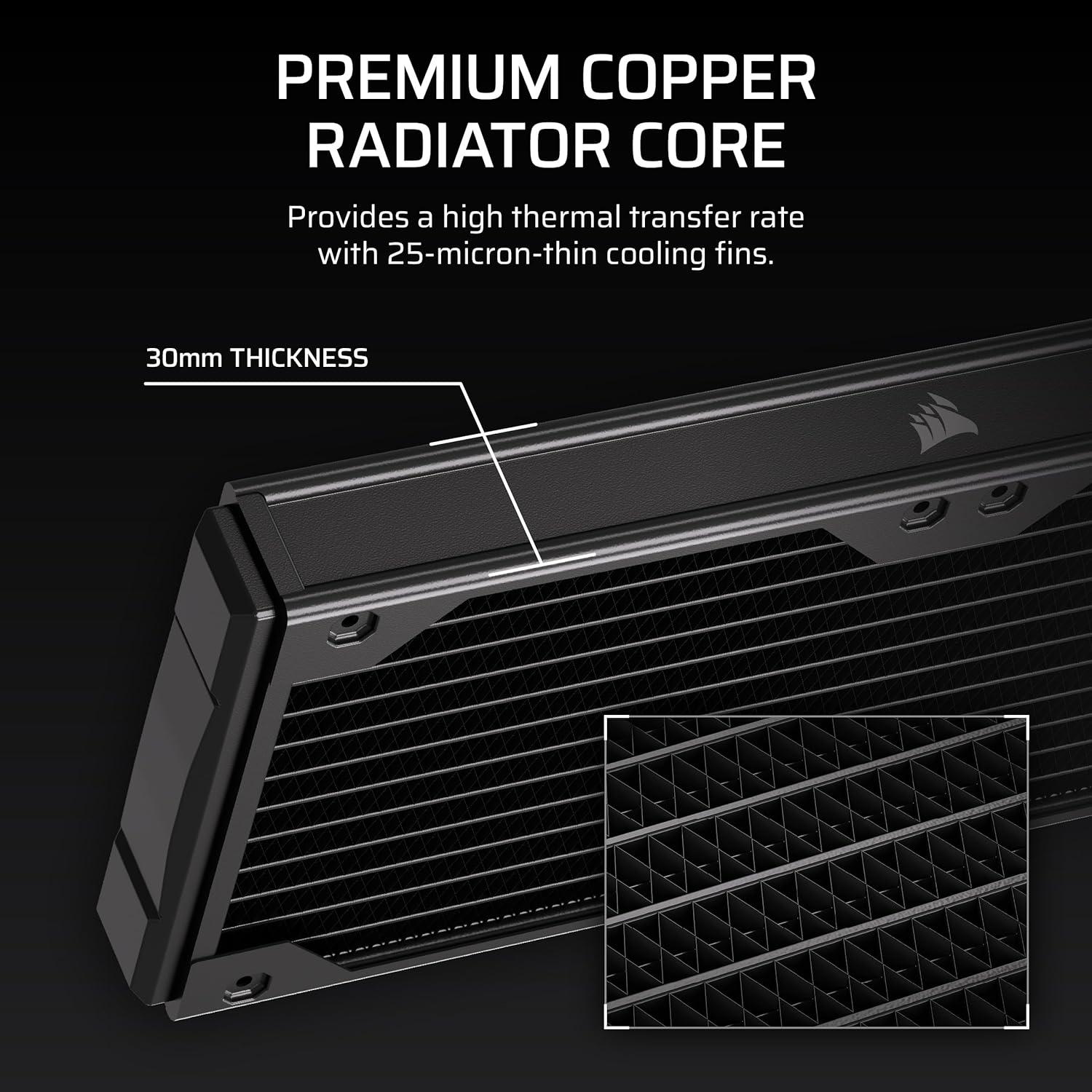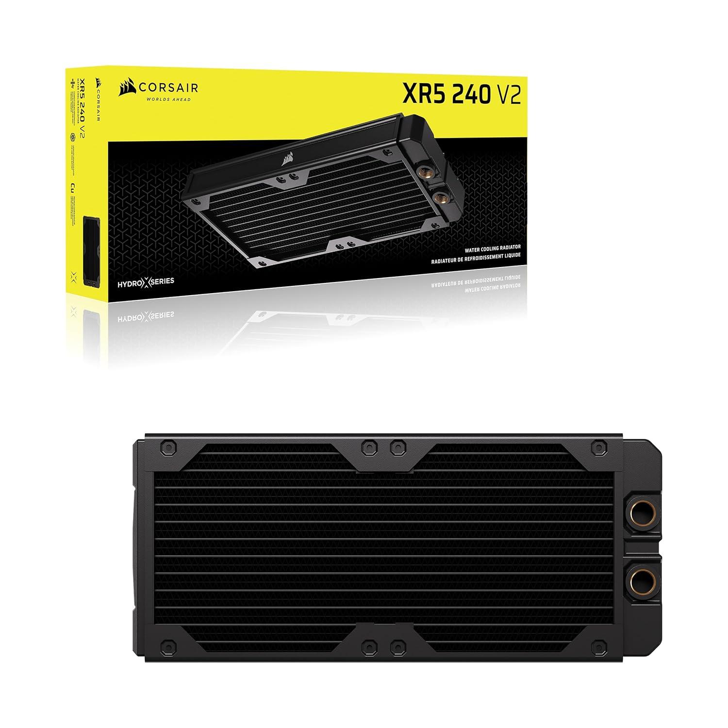 The CORSAIR Hydro X Series XR5 V2 Custom Cooling Radiator delivers extreme cooling performance, featuring a 30mm thick radiator and 25-micron thin cooling fins to maximize heat dissipation surface area. A premium copper radiator core is optimized for use alongside copper CPU and GPU water blocks, enhancing thermal transfer efficiency. Intuitive features, such as Integrated Fan Screw Guides, built-in Screw Protection Plates, improved support for iCUE LINK fans, simplify installation and help prevent radiator damage. With standard G1/4″ threads for universal compatibility and a surface area capable of handling cutting-edge high-performance hardware, the Hydro X Series XR5 V2 Custom Cooling Radiator is engineered to cool even the most ambitious custom liquid cooling loops and conquer heat.