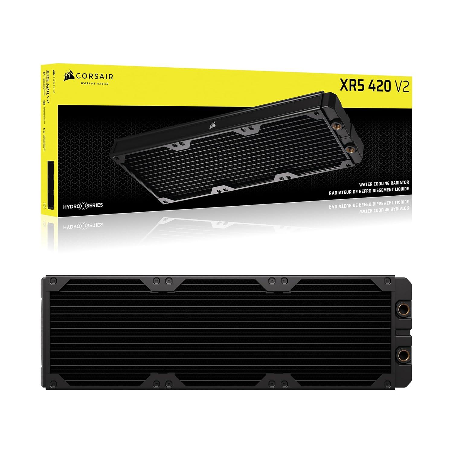 CORSAIR Hydro X Series XR5 420mm V2 Custom Cooling Radiator – Compatible with iCUE Link Fans, 3x140mm Fan Mounts, Screw Protection Plates, G1/4” Threads – Black(Black)