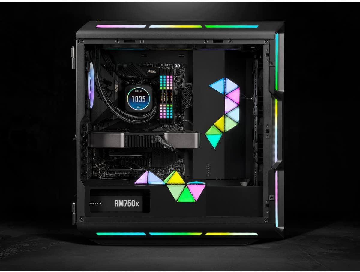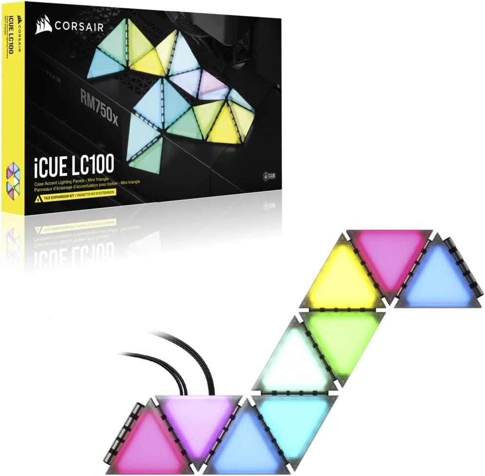 Corsair iCUE LC100 Case Accent Lighting Panels – Mini Triangle – 9X Tile Starter Kit (81 RGB LEDs with Light Diffusion, Simple Magnetic Attachment, iCUE Lighting Node PRO Included)(Expansion Kit)