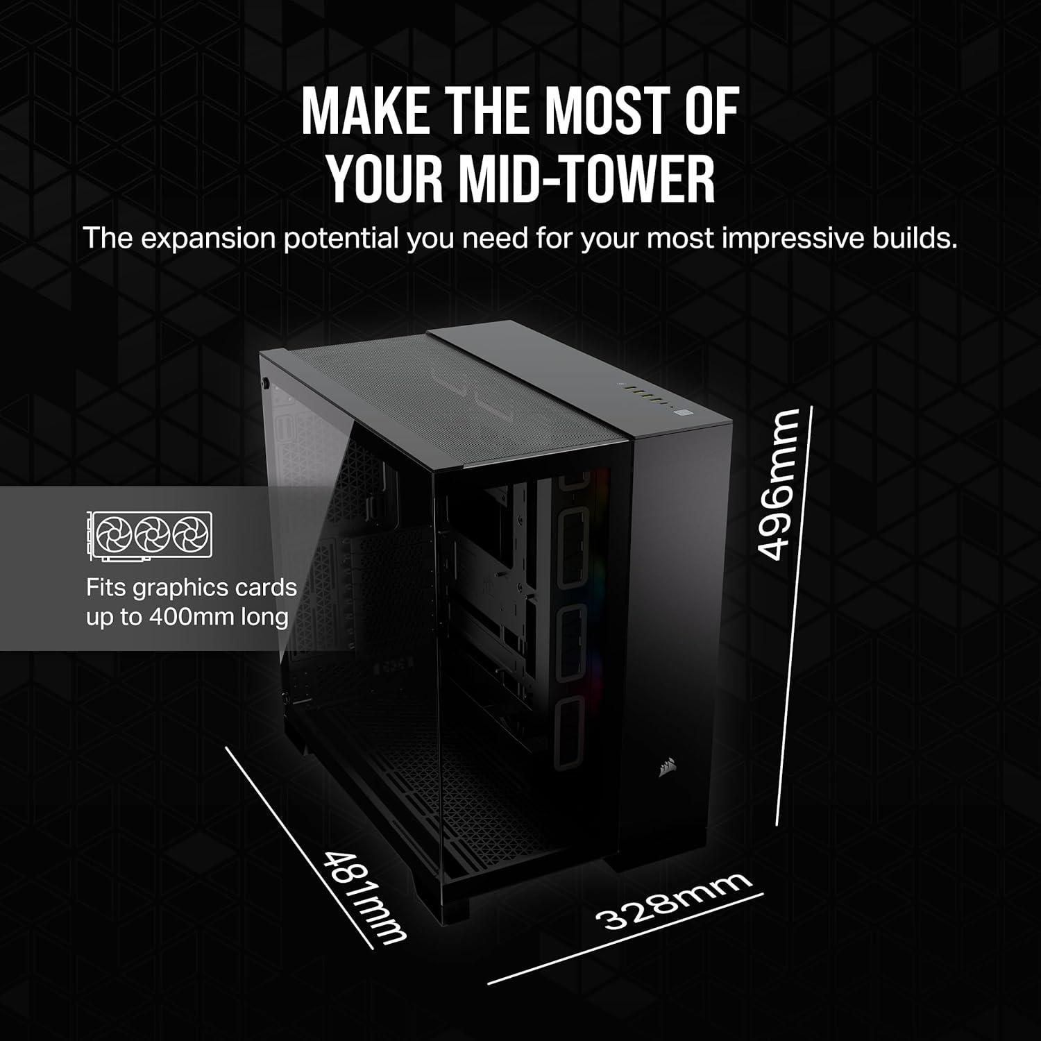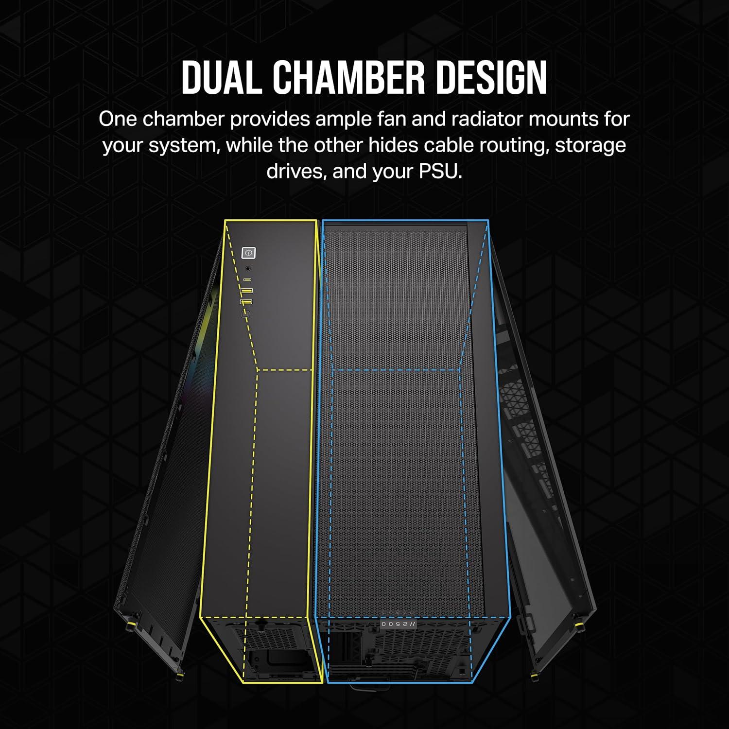CORSAIR iCUE Link 2500X RGB Tempered Glass mATX Mid-Tower Dual Chamber PC Case – 2X CORSAIR RX120 RGB Fans Included – Wide Cooling Flexibility – Reverse Connection Motherboard Compatible – Black(Black)