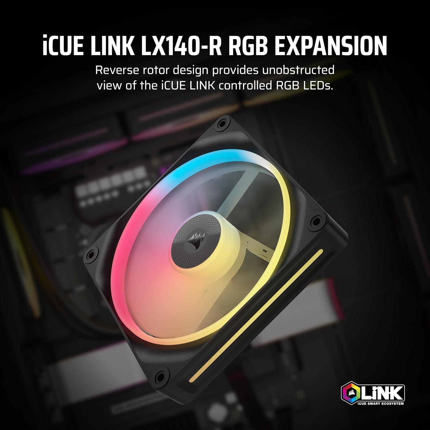 CORSAIR iCUE Link LX120-R RGB 120mm PWM Reverse Fans – Triple Fan Kit – Low-Noise, Magnetic Dome Bearing, Dual Light Loops, CORSAIR QuikTurn Screws, Zero RPM Mode – Black(Black)