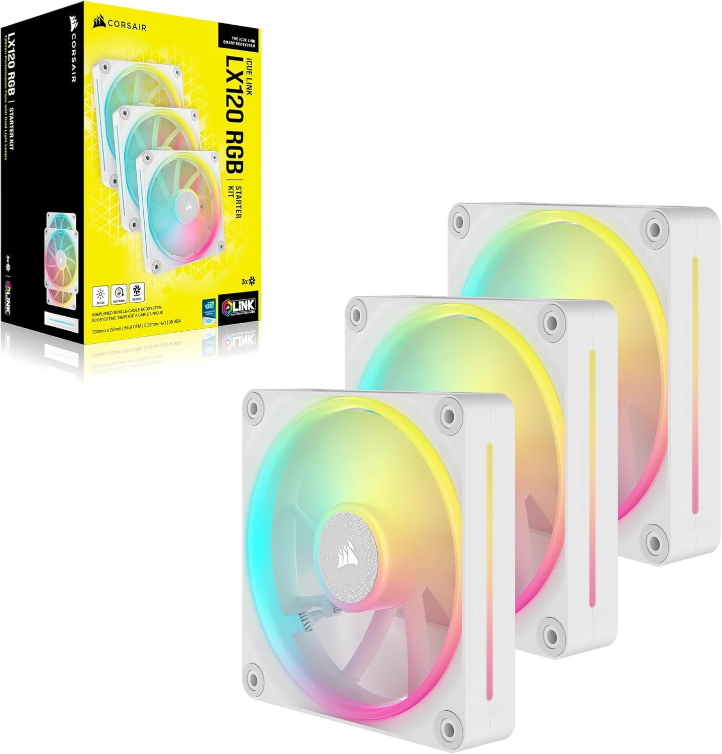 CORSAIR iCUE Link LX120 RGB 120mm PWM Fan Single Pack – Dual Light Loops – Requires iCUE Link System Hub (Sold Separately) – CORSAIR AirGuide Technology – Black(White)
