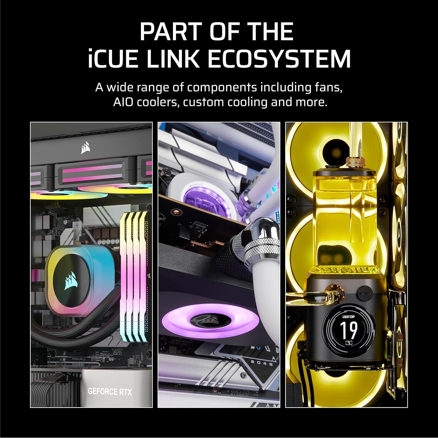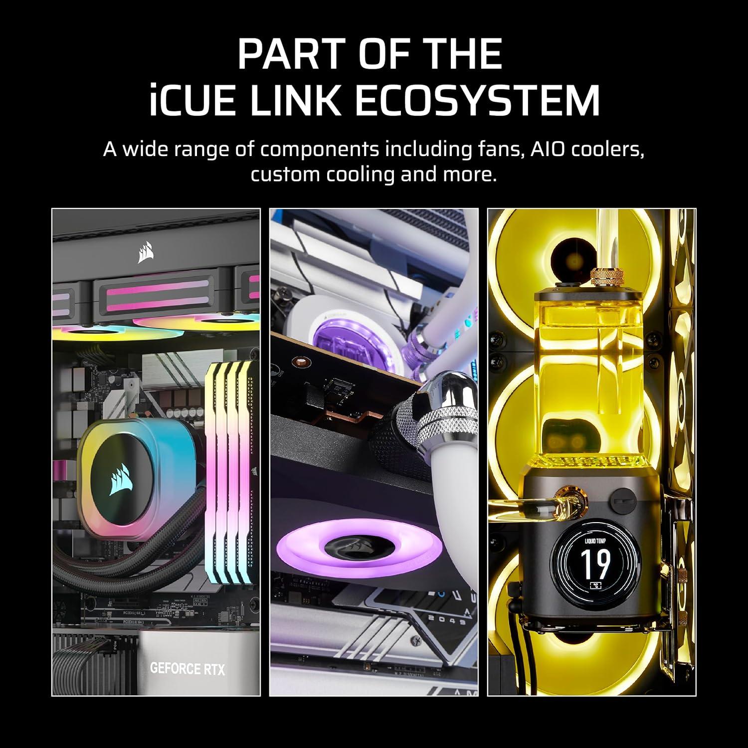 LINK Your Fans Together: The included iCUE LINK bridge connectors can connect your fans directly to each other, creating a seamless bank of fans all connected to the iCUE LINK System Hub with just a single cable.