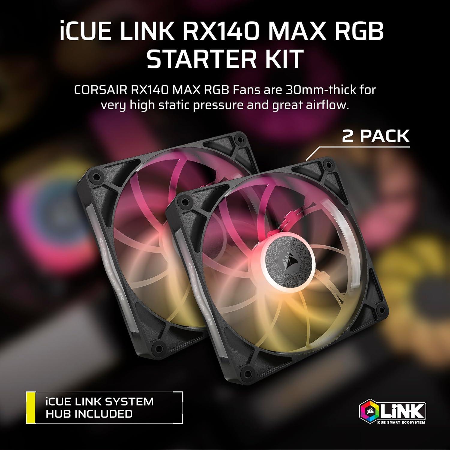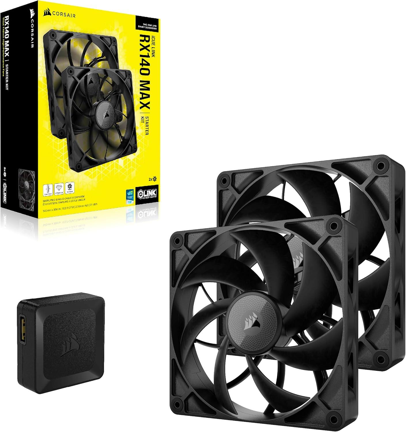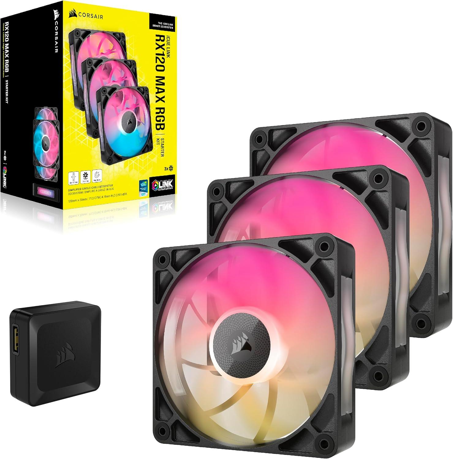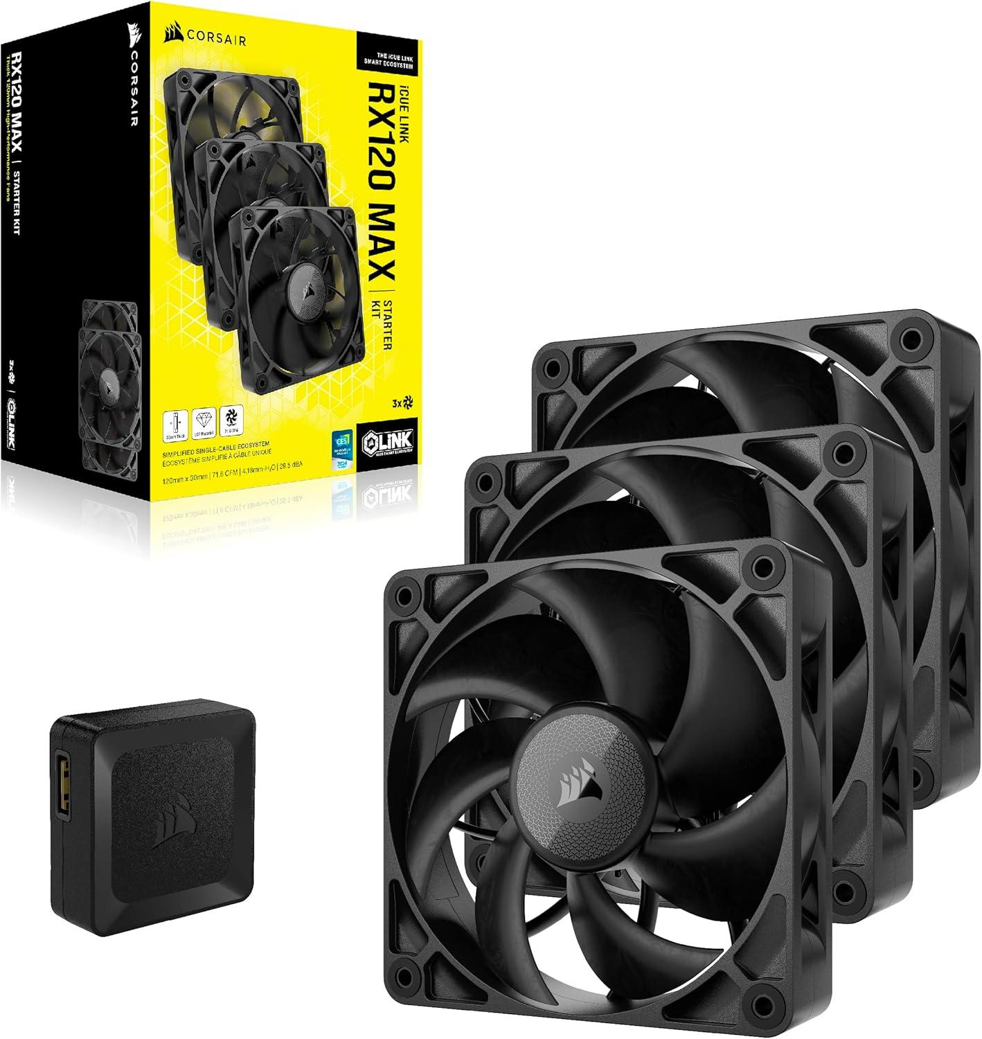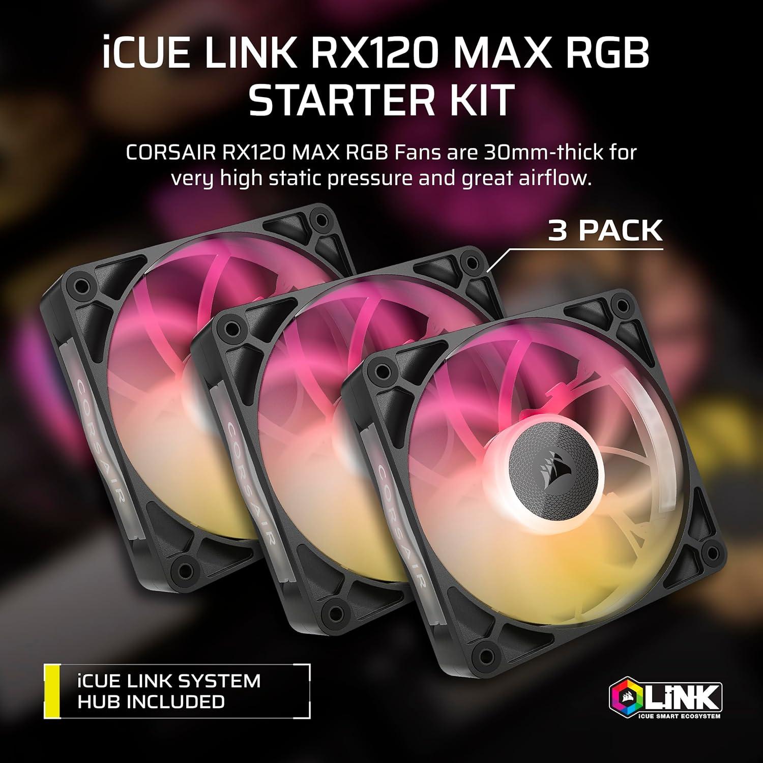 CORSAIR iCUE Link RX120 MAX RGB 120mm PWM Thick Fans with iCUE Link System Hub – High-Static Pressure – Magnetic Dome Bearing – Triple Pack – Black(Black)