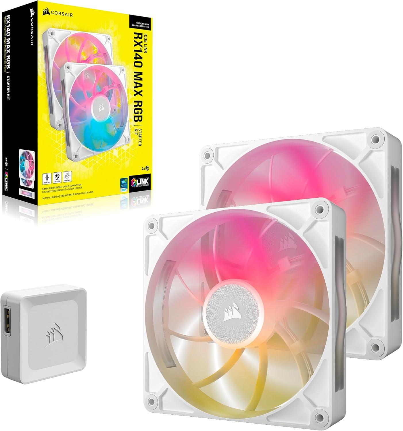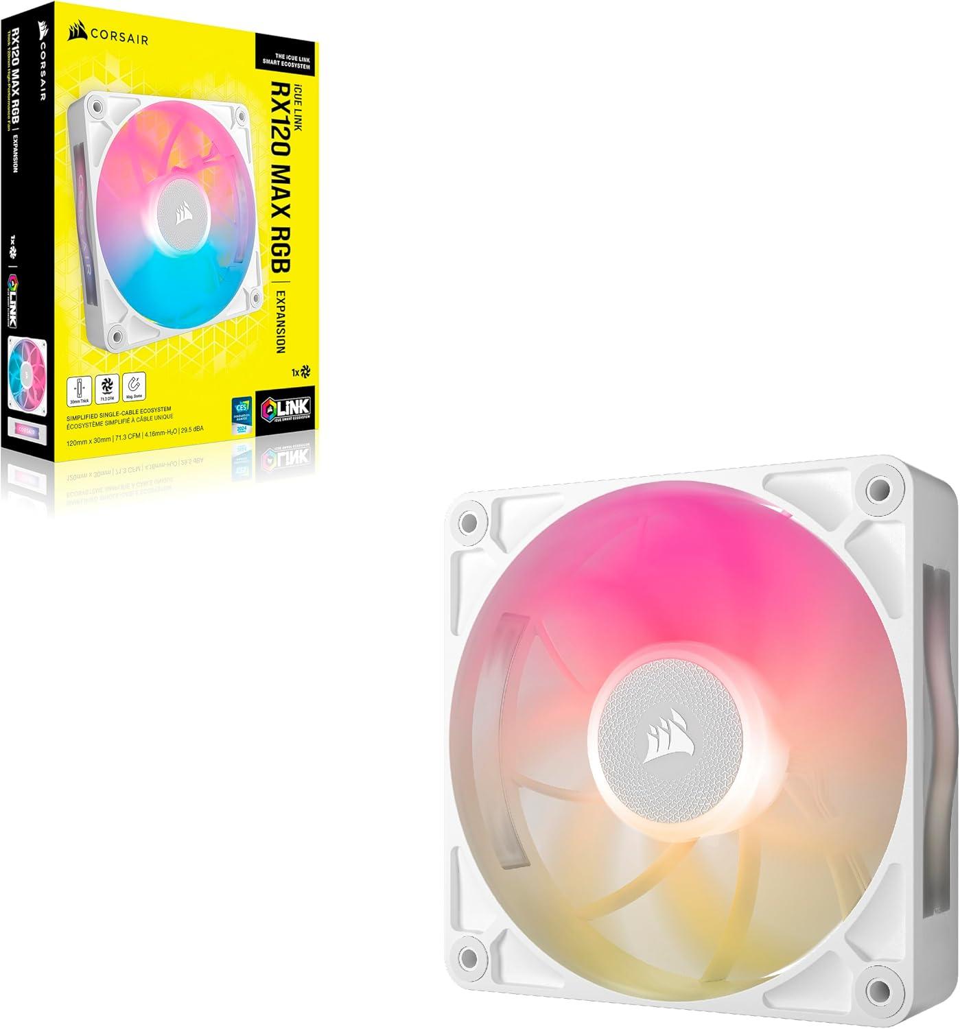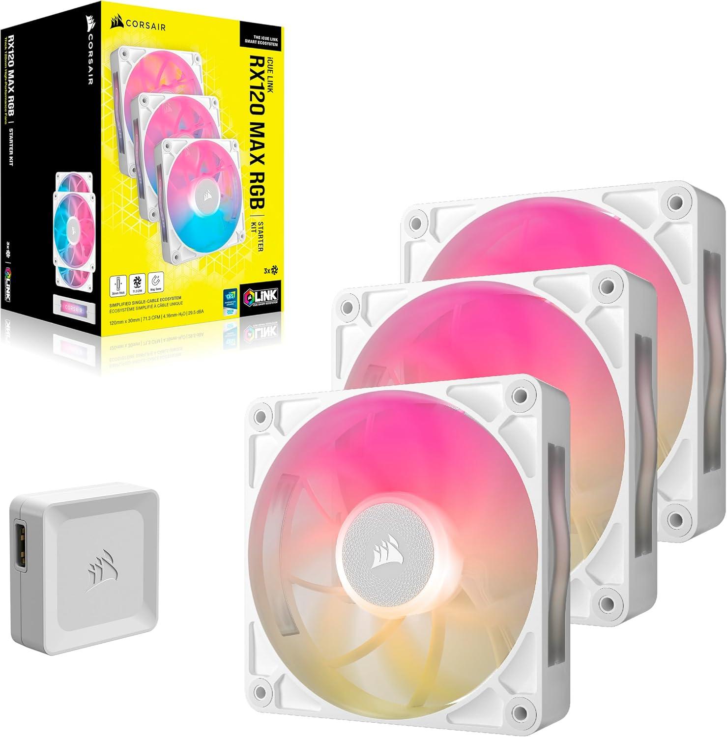 CORSAIR iCUE Link RX120 MAX RGB 120mm PWM Thick Fans with iCUE Link System Hub – High-Static Pressure – Magnetic Dome Bearing – Triple Pack – Black(White)