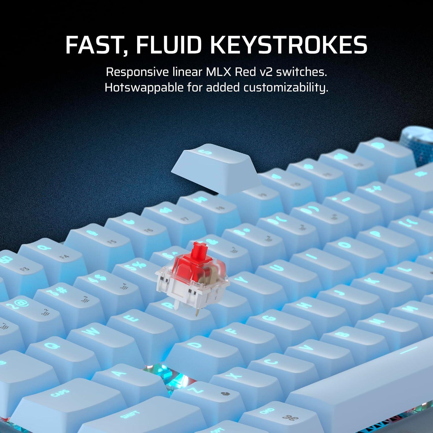Corsair K65 Plus Wireless 75% RGB Hot-Swappable Mechanical Gaming Keyboard for Mac and iPad – Pre-Lubricated MLX Red v2 Linear Switches, Sound Dampening – QWERTY NA Layout – Glacier Blue