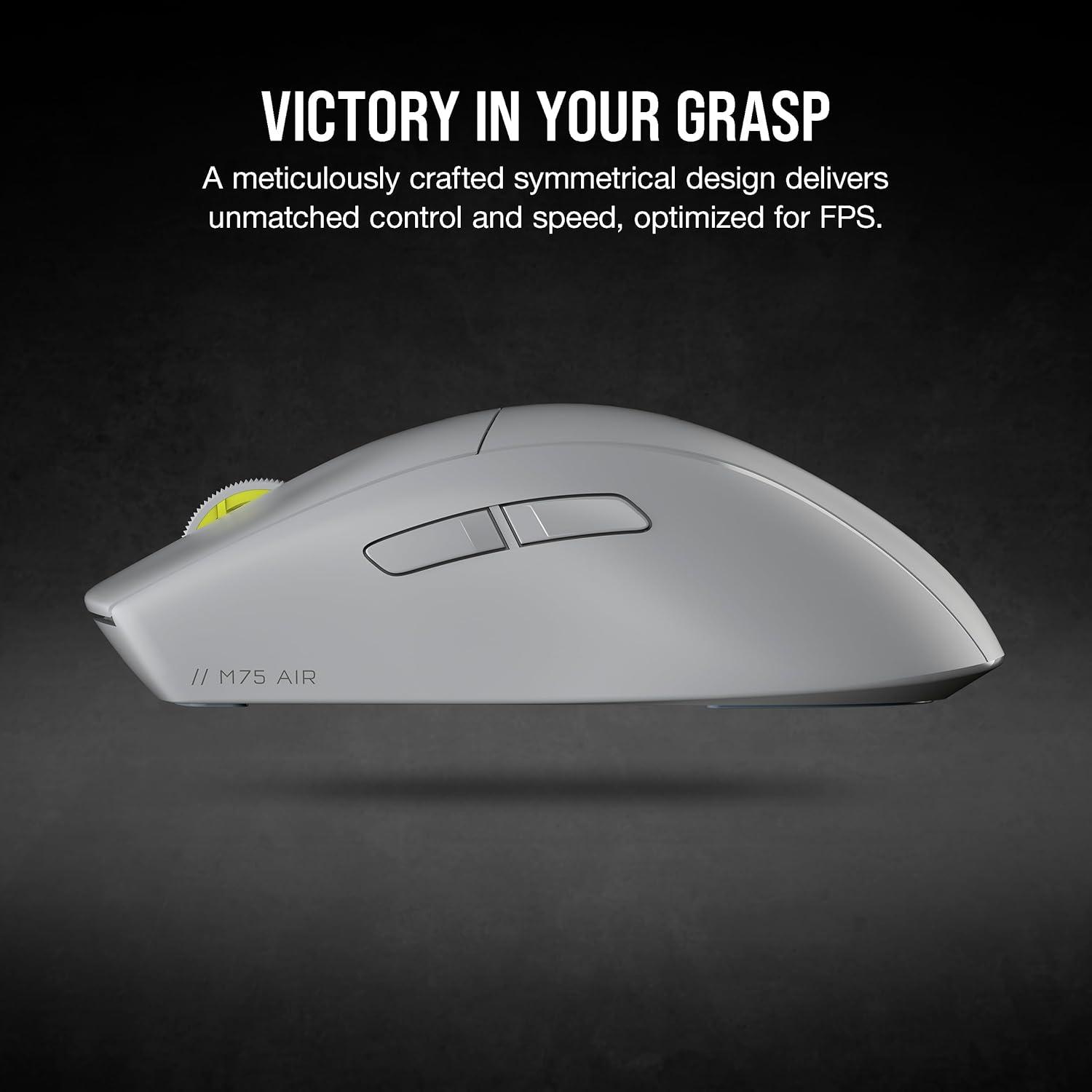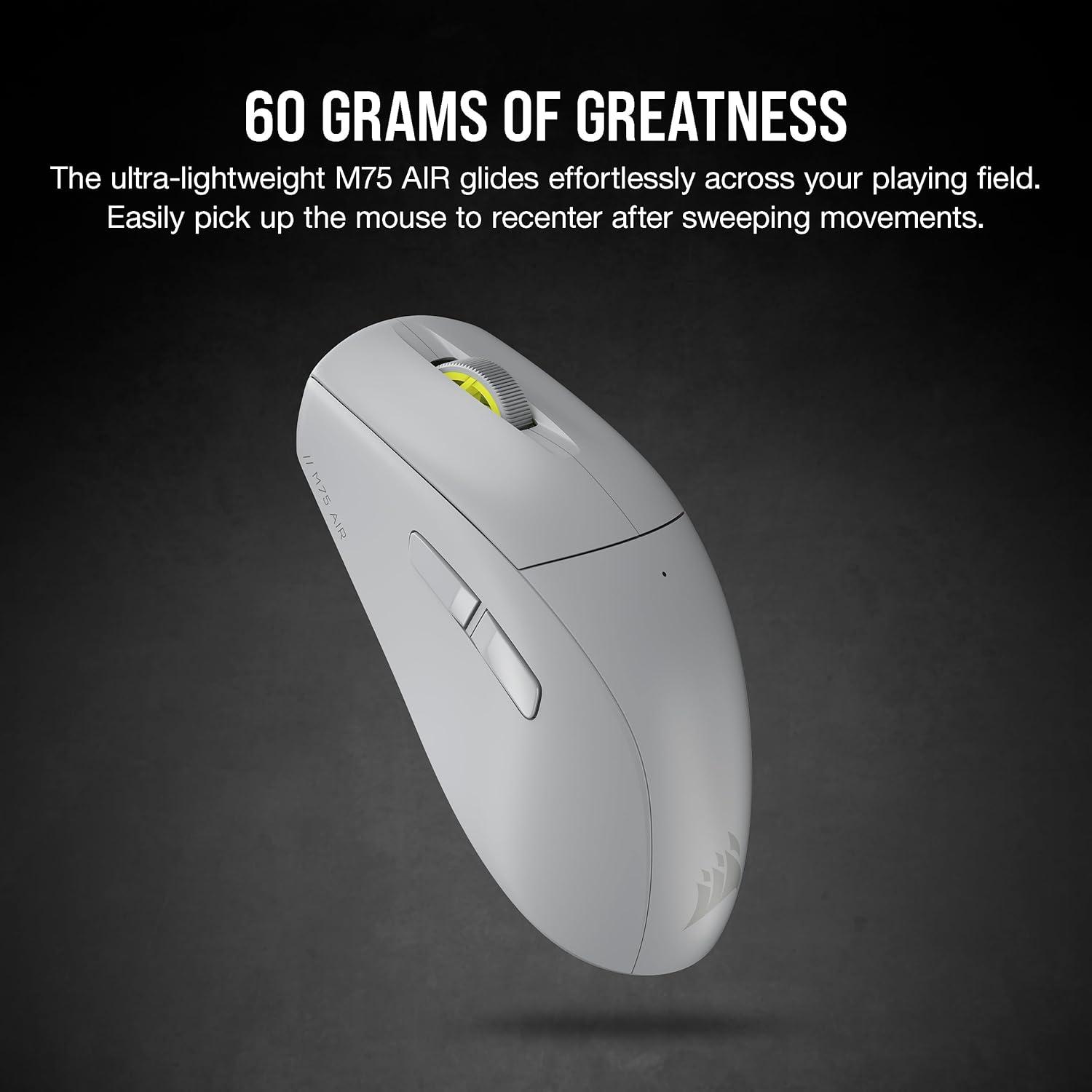 Corsair M75 AIR Wireless Ultra-Light FPS Gaming Mouse – 26,000 DPI – Ultra-Fast Input – Symmetric Shape – iCUE Compatible – PC, Mac – White(Gray)