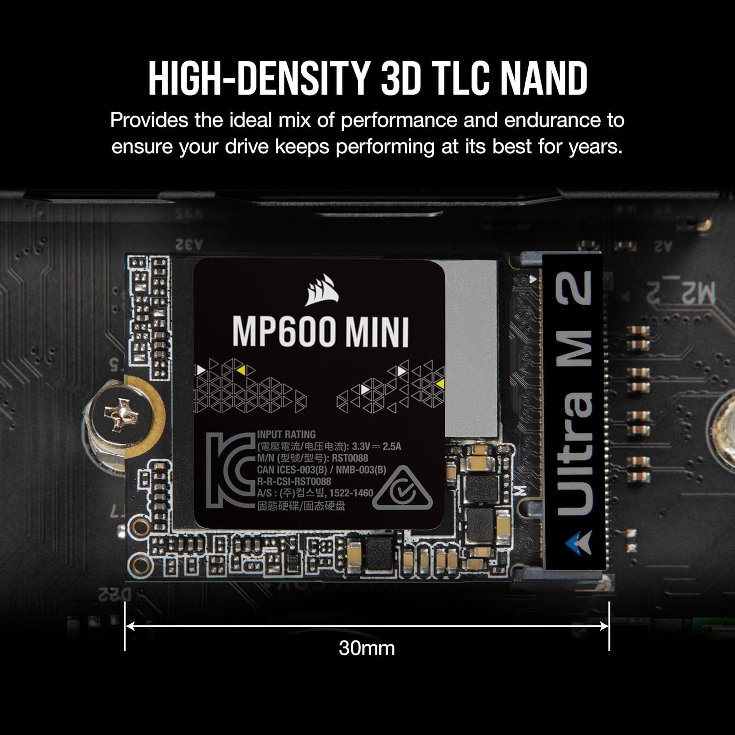 Corsair MP600 MINI 1TB M.2 NVMe PCIe x4 Gen4 2 SSD – M.2 2230 – Up to 7,000MB/sec Sequential Read – High-Density 3D TLC NAND – Great for Steam Deck and Microsoft Surface – Black(2TB)