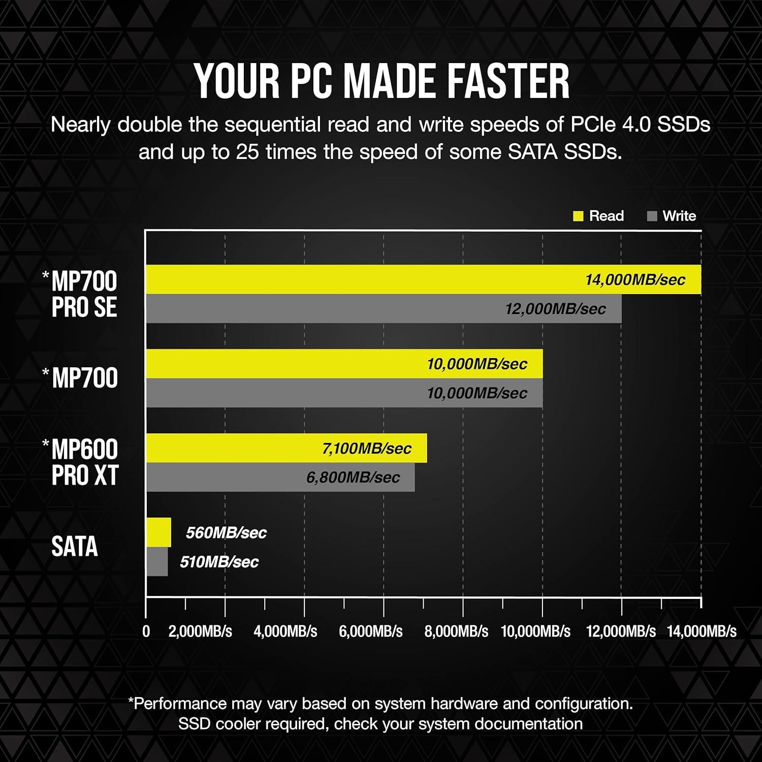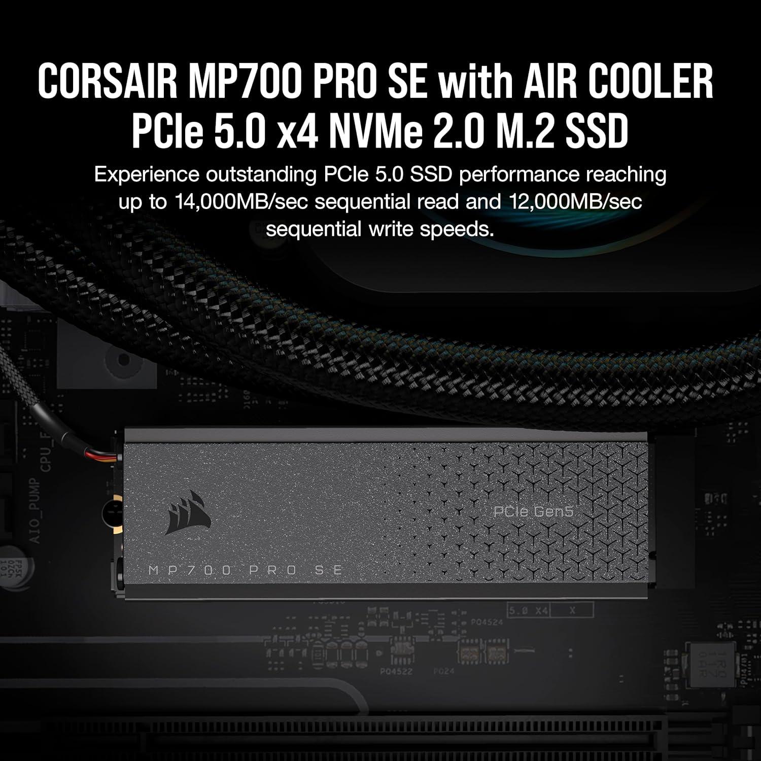 Corsair MP700 PRO SE with Air Cooler 2TB PCIe 5.0 x4 NVMe 2.0 M.2 SSD – M.2 2280 – Up to 14,000MB/sec Sequential Read – High-Density 3D TLC NAND – Black(SSD with Air Cooler)
