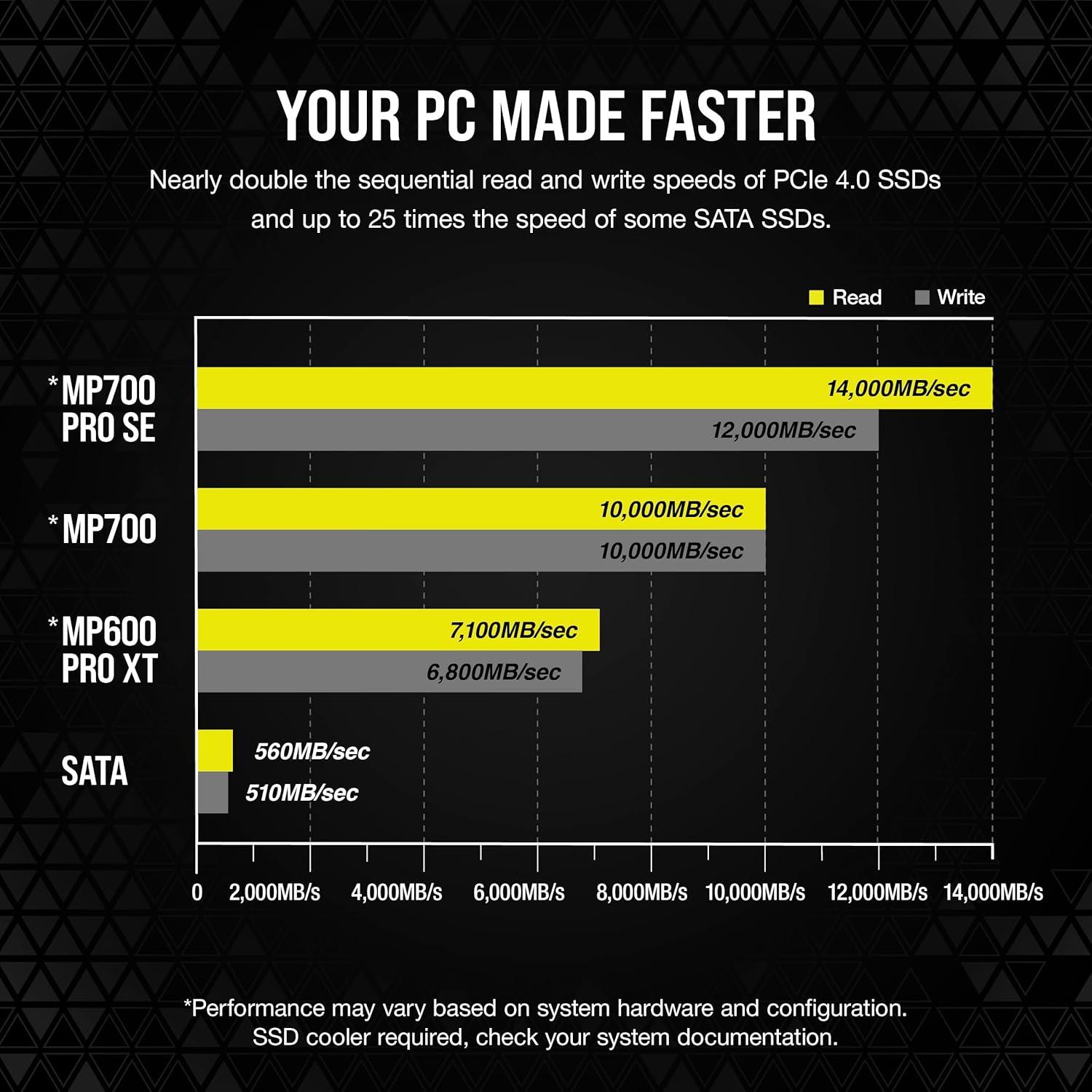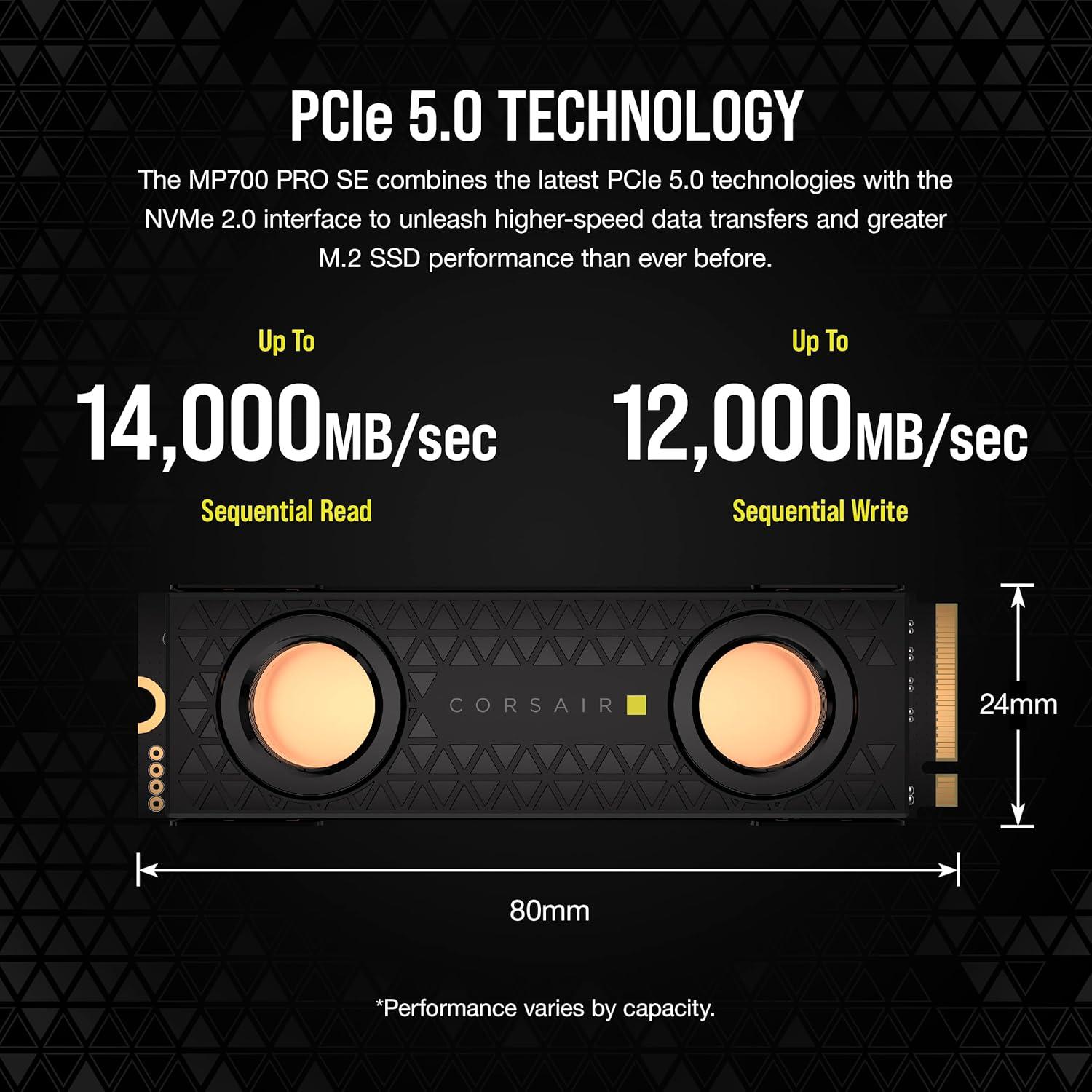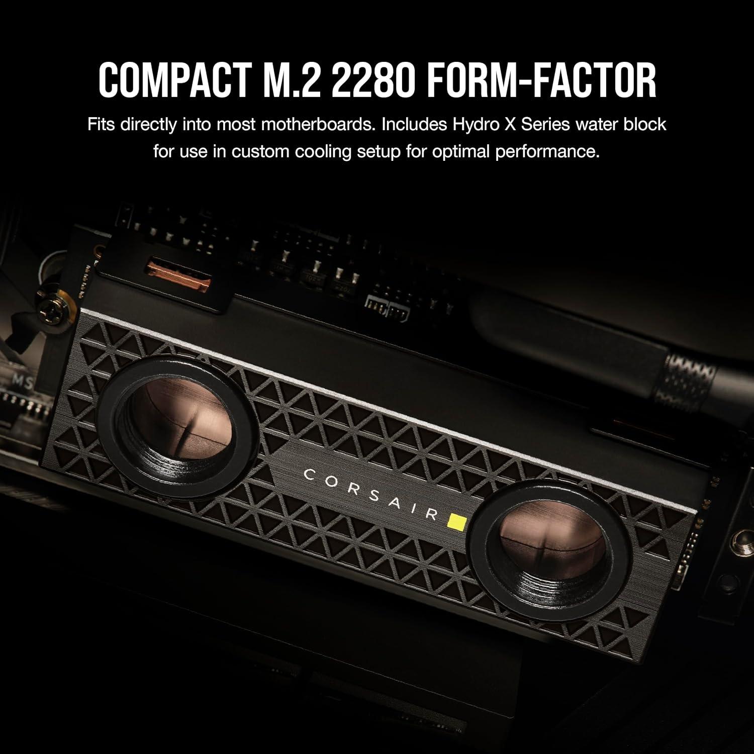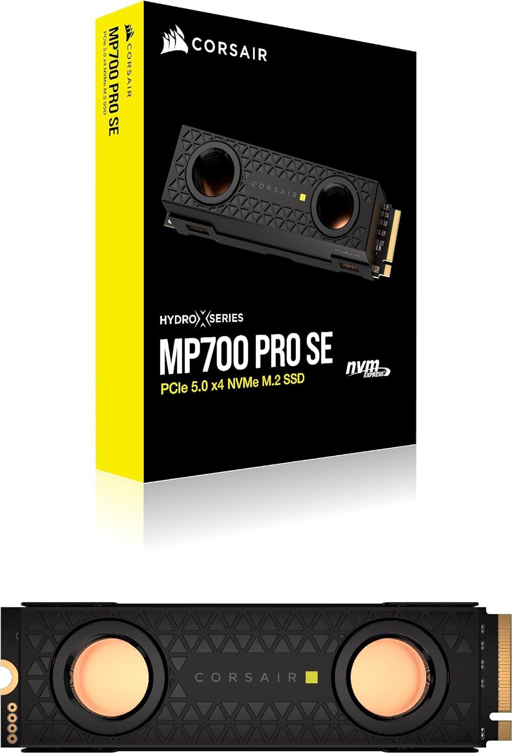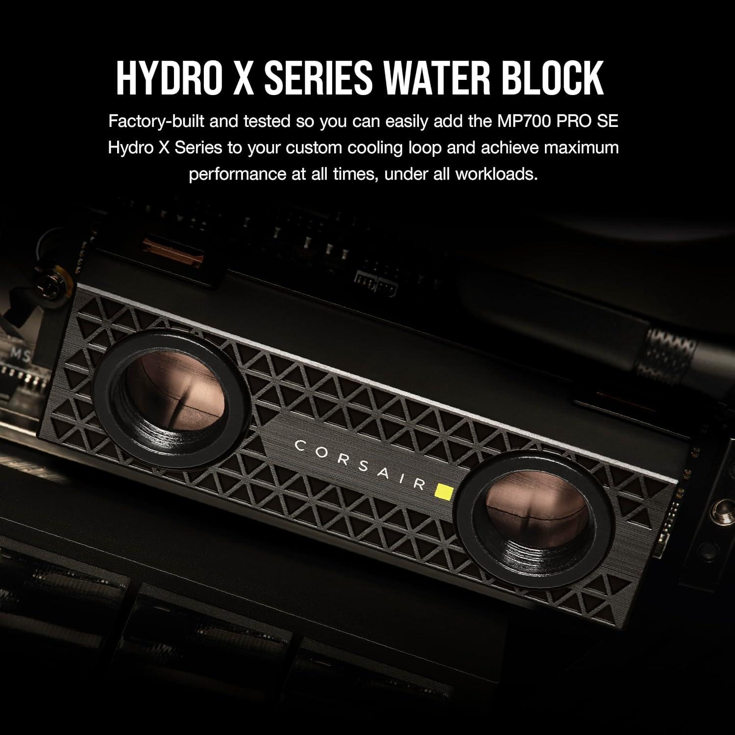 Corsair MP700 PRO SE with Air Cooler 2TB PCIe 5.0 x4 NVMe 2.0 M.2 SSD – M.2 2280 – Up to 14,000MB/sec Sequential Read – High-Density 3D TLC NAND – Black(SSD with Hydro X Waterblock)