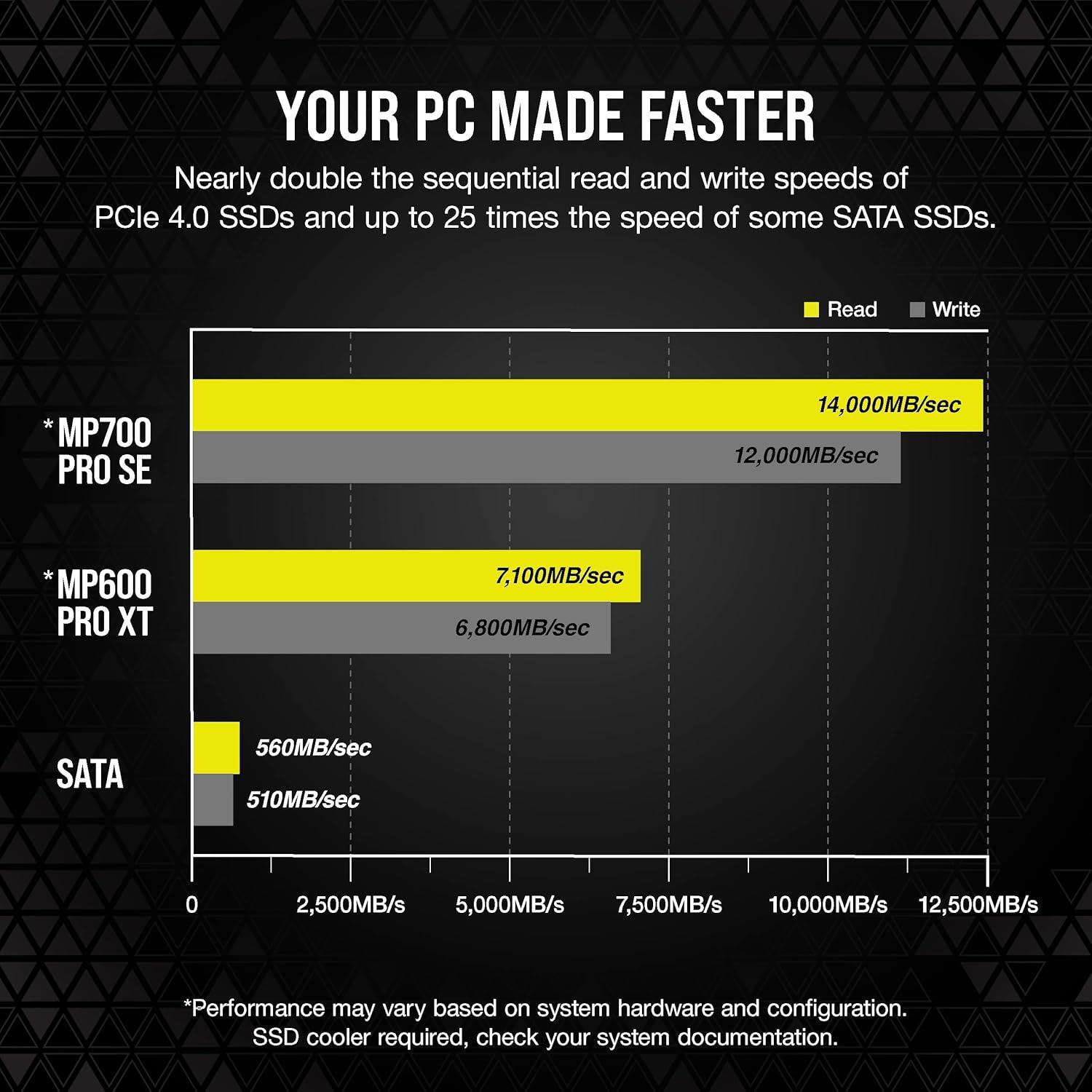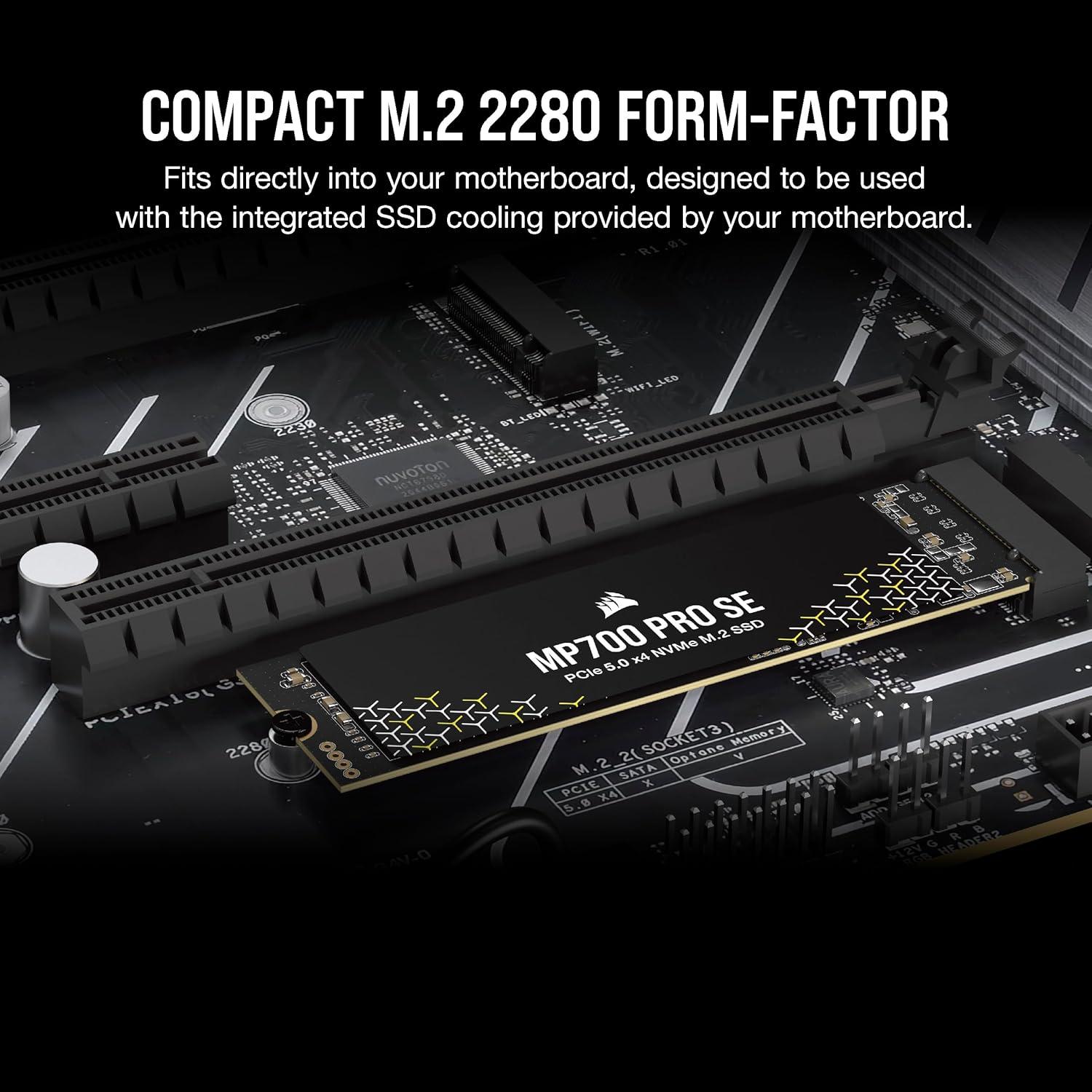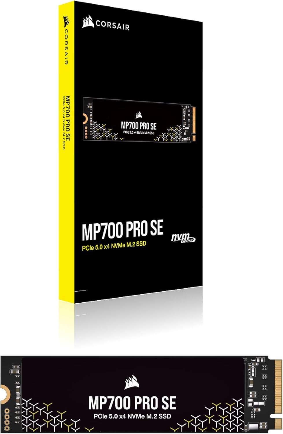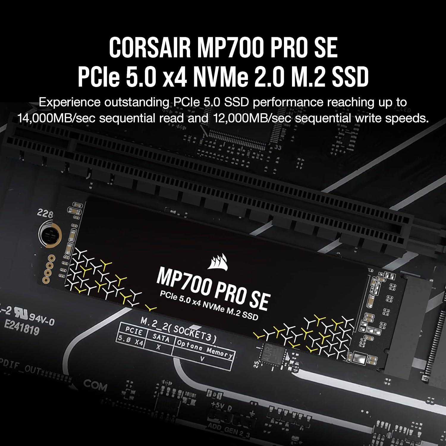 Corsair MP700 PRO SE with Air Cooler 2TB PCIe 5.0 x4 NVMe 2.0 M.2 SSD – M.2 2280 – Up to 14,000MB/sec Sequential Read – High-Density 3D TLC NAND – Black(SSD)