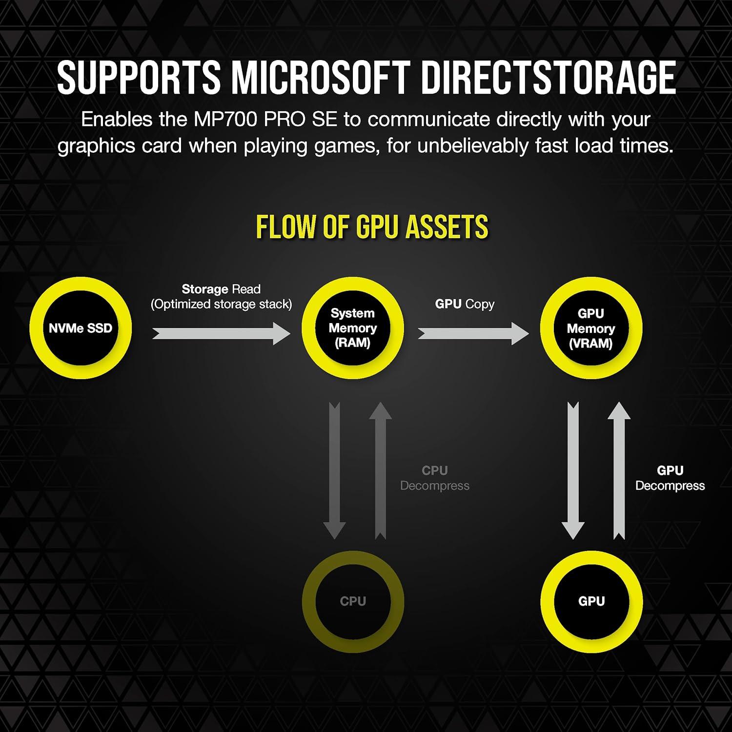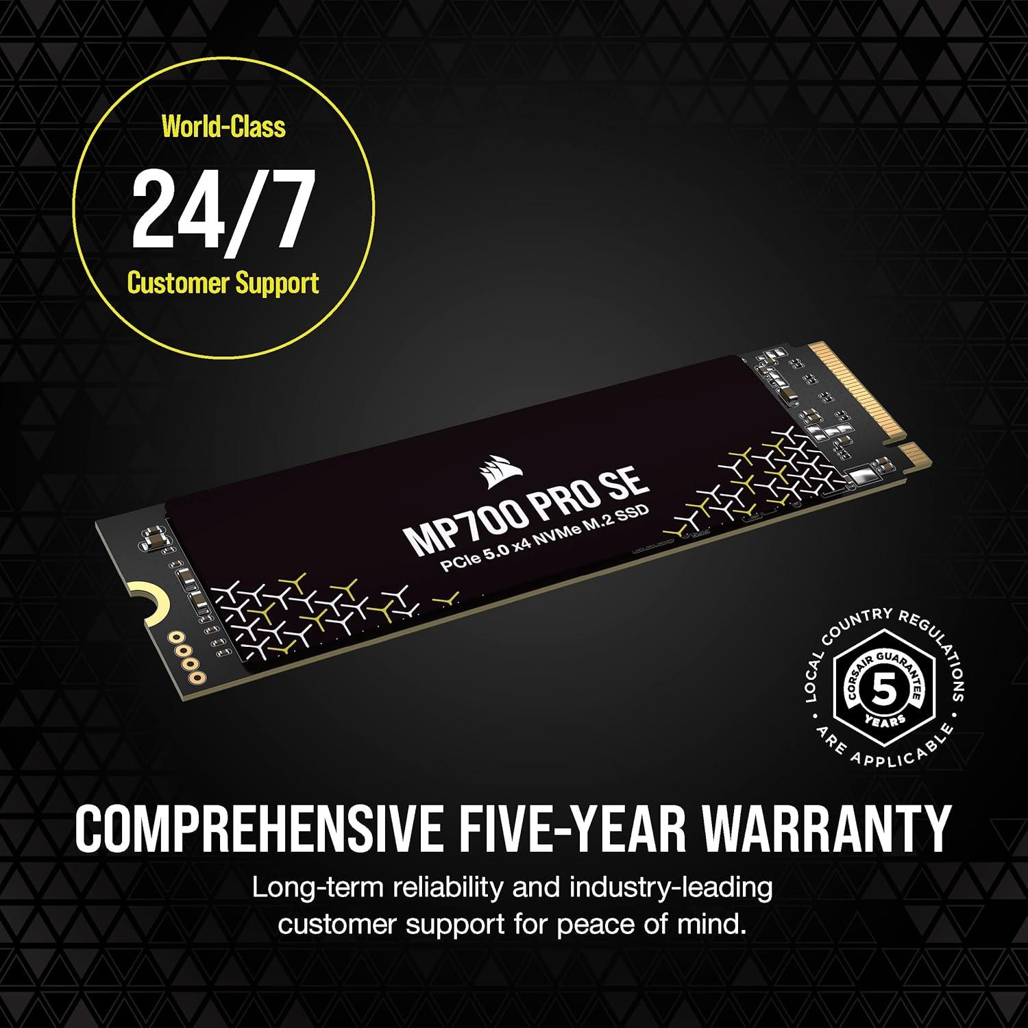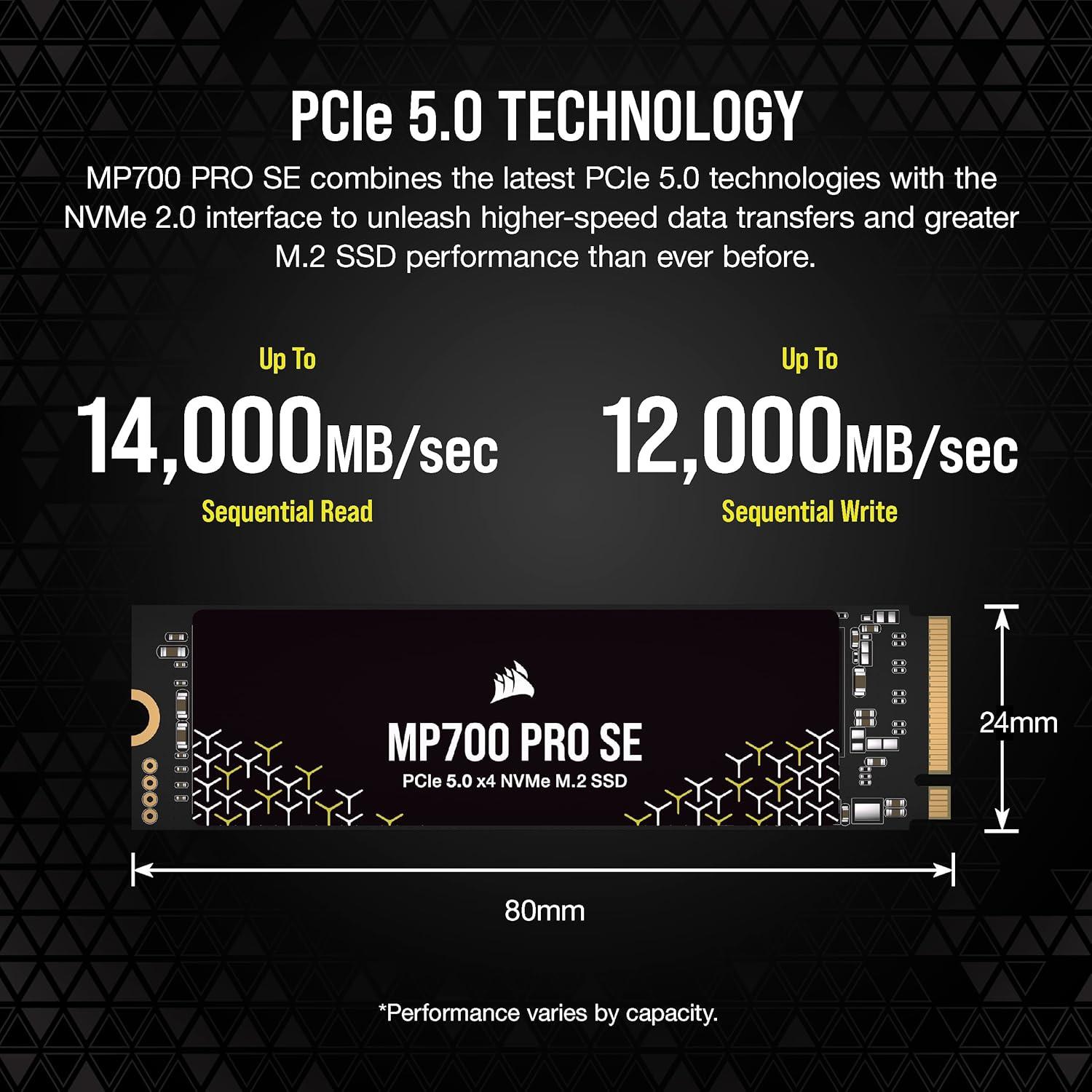 Experience the incredible performance of next-gen PCIe 5.0 storage in your system, with up to 14,000MB/sec sequential read and 12,000MB/sec sequential write speeds for unprecedented boot, load, and save times. The high-bandwidth NVMe 2.0 interface and the latest high-density 3D TLC NAND flash memory offer outstanding performance and longevity. Slot the MP700 PRO SE directly into your motherboard thanks to its M.2 2280 form-factor, while the stylish air cooler helps manage temperatures and reduce throttling. Microsoft DirectStorage enables unprecedented load times when playing compatible games. With endurance up to 3,000TB Written and a comprehensive five-year warranty, the MP700 PRO SE delivers cutting-edge storage performance for years to come.