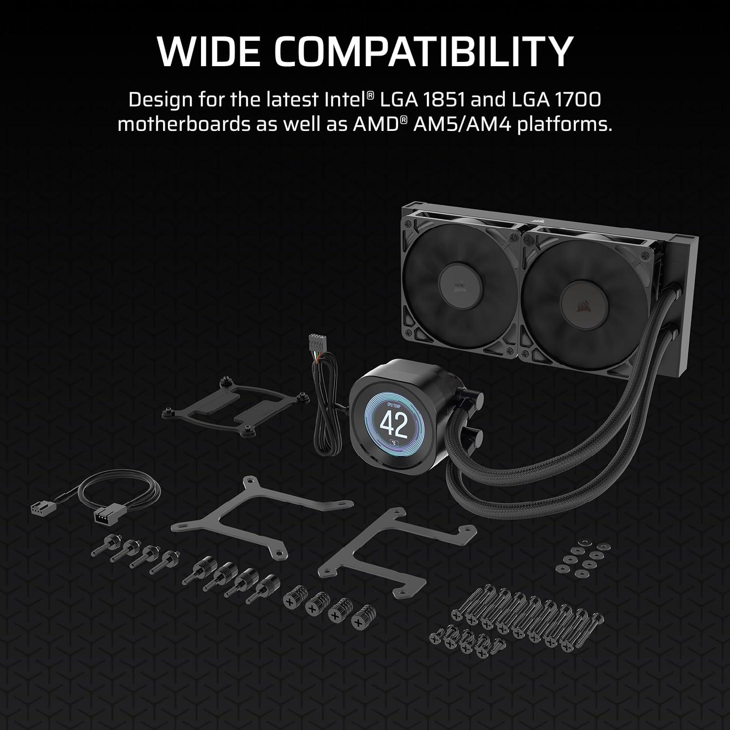 CORSAIR Nautilus 240 RS LCD Liquid CPU Cooler – 2.1″ IPS LCD Screen, 240mm AIO, Low-Noise, Daisy-Chain, Intel LGA 1851/1700, AMD AM5/AM4 – 2X RS120 Fans Included – White(Black)