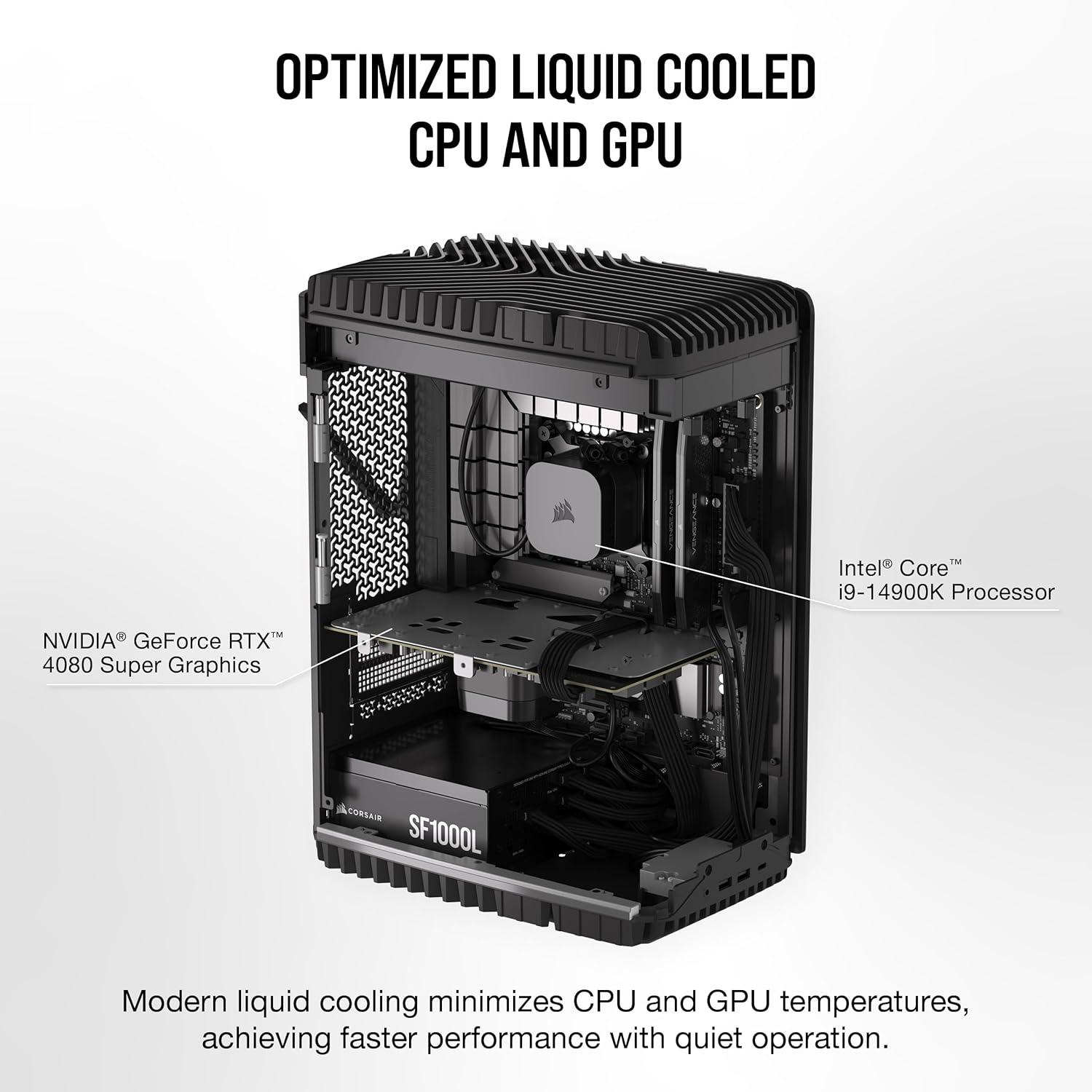 Corsair ONE i500 Gaming PC – Liquid Cooled Intel® Core™ i9 14900K CPU – Liquid Cooled NVIDIA® GeForce RTX™ 4090 GPU – 64GB Vengeance DDR5 Memory – 2TB M.2 SSD – Wood Bright(Wood Bright)