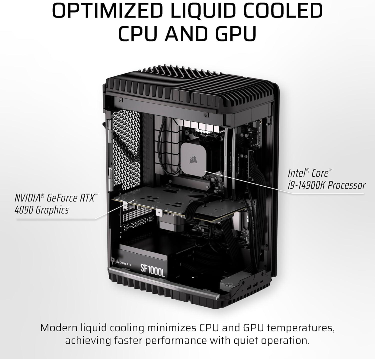 Corsair ONE i500 Gaming PC – Liquid Cooled Intel® Core™ i9 14900K CPU – Liquid Cooled NVIDIA® GeForce RTX™ 4090 GPU – 64GB Vengeance DDR5 Memory – 2TB M.2 SSD – Wood Bright(Metal Dark)