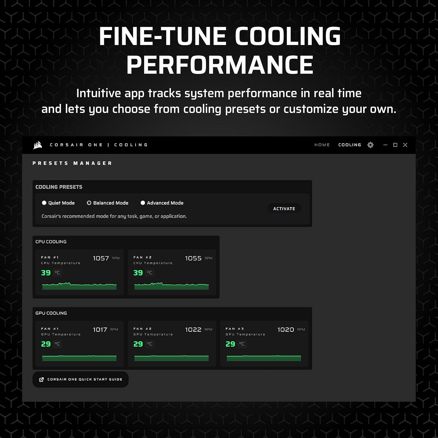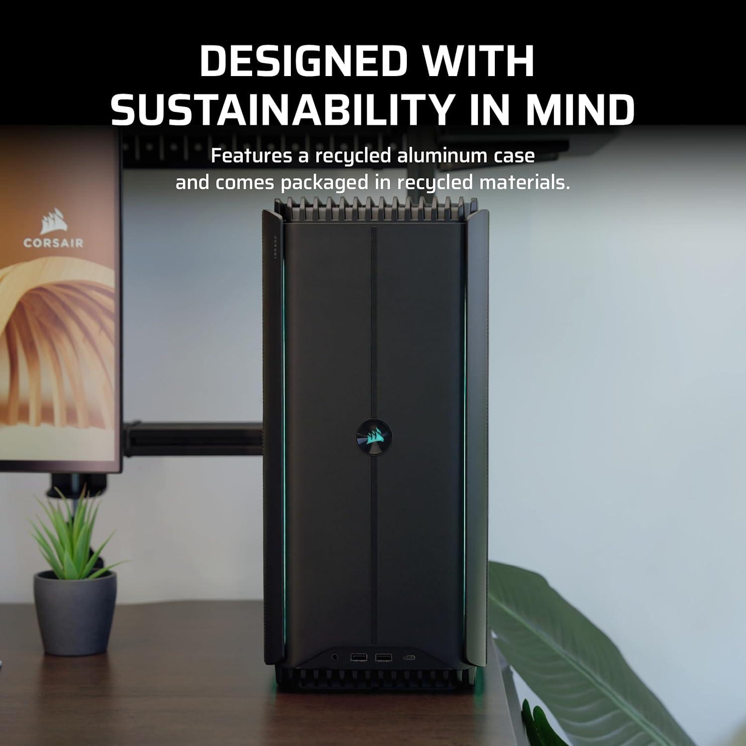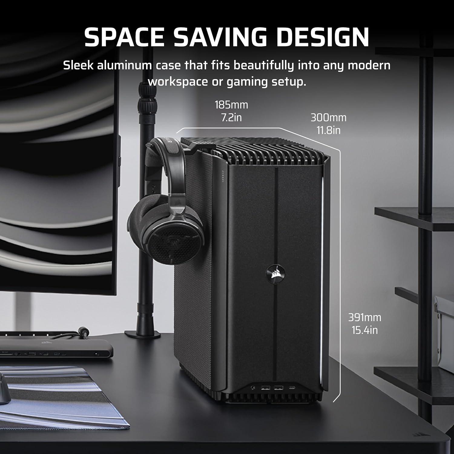 The CORSAIR ONE i600 delivers excellent performance with dual 240mm liquid coolers for enhanced thermal efficiency in a sleek aluminum case. Experience faster processing, quiet operation, and unrivaled graphics for seamless gaming and multitasking. Personalize the front panel and under glow lighting to suit your mood and elevate your setup with ease. Elevate your computing experience with the CORSAIR ONE i600. Technical Specifications: Dimensions (L x W x H): 300mm x 185mm x 391mm / 11.8″ x 7.6″ x 15.3″ CPU: Intel® Core™ Ultra 9 285K Processor GPU: NVIDIA® GeForce RTX 5080 graphics DRAM: 64GB CORSAIR VENGEANCE DDR5 6400MT/s memory Primary Storage(SSD): 2TB M.2 NVMe SSD Secondary Storage(SSD): 2TB M.2 NVMe SSD Motherboard: Z890 Networking: 2.5G Ethernet, Wi-Fi 7, Bluetooth 5.4 Power Supply: CORSAIR 1000W SFX-L 80+ GOLD Fully Modular Power Supply Operating System: Windows 11 Home Front I/O Ports: USB 3.2 Gen1 Type-A 5Gbps, USB 3.2 Gen2 Type-C 10Gbps, Combination Mic/Headphone Jack Rear I/O Panel includes: 1x USB 20Gbps Type-C, 1x USB 10Gbps Type-A, 4x USB 5Gbps Type-A, 2x USB 2.0 Type-A, 3x Audio ports, 2.5G Ethernet, 3x DisplayPort (From GPU), 1x HDMI (From GPU)