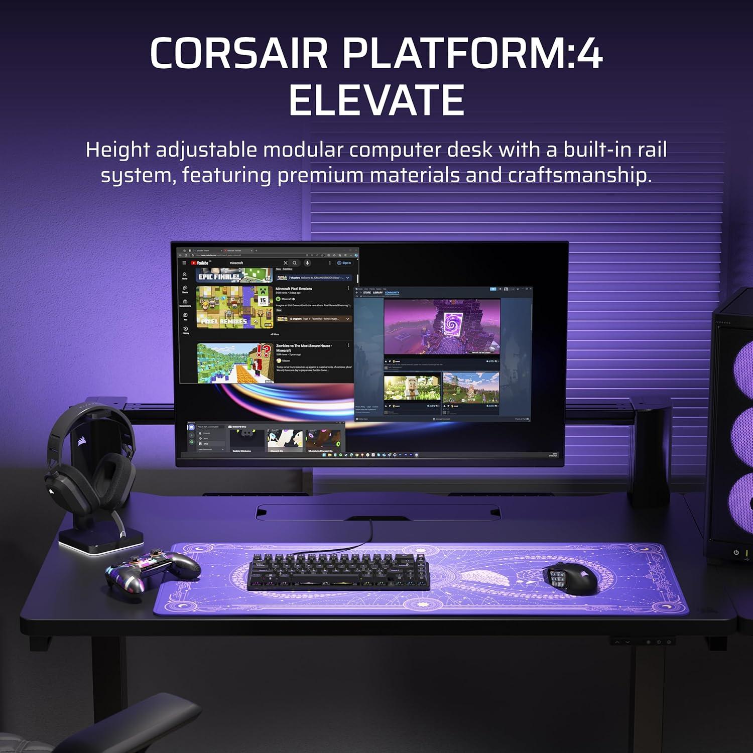 Corsair Platform:4 Elevate – 47 x 30 Inches, Adjustable Height, Electric Standing Computer Home Office Gaming Desk, Memory Presets, Cable Management, USB Ports, Monitor Arm Included – Black(Black)