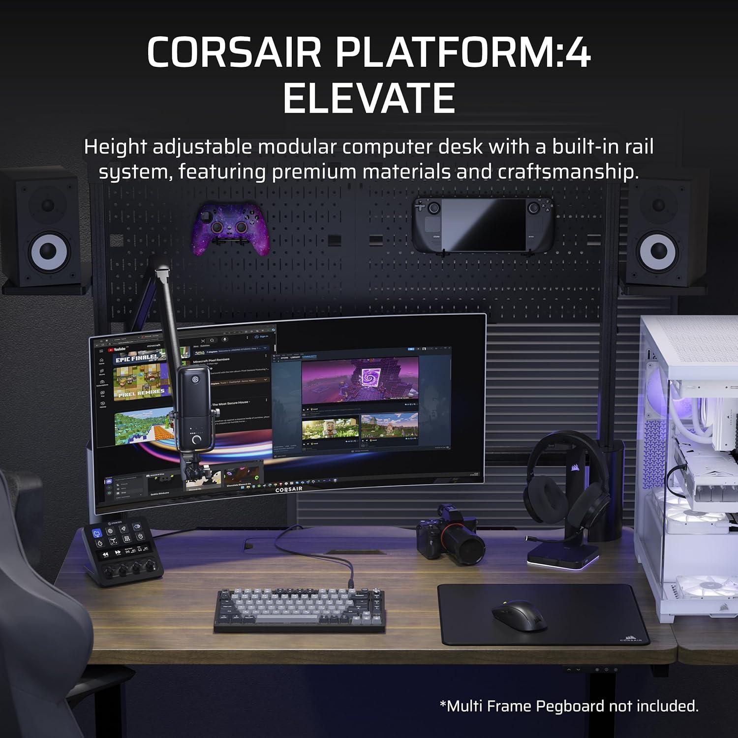 Corsair Platform:4 Elevate – 47 x 30 Inches, Adjustable Height, Electric Standing Computer Home Office Gaming Desk, Memory Presets, Cable Management, USB Ports, Monitor Arm Included – Dark Walnut(Dark Walnut)