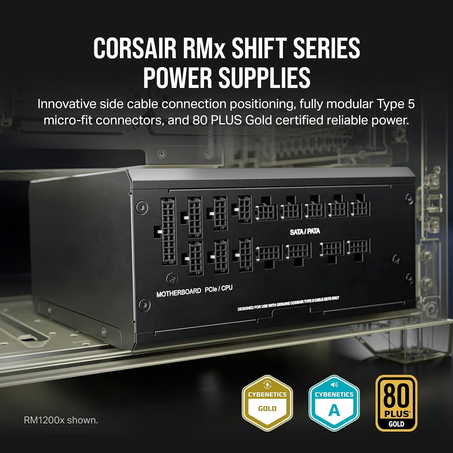 Corsair RM1000x Shift Fully Modular ATX Power Supply – Modular Side Interface – ATX 3.1 & PCIe 5.1 Compliant – Zero RPM Fan Mode – 105°C-Rated Capacitors – 80 Plus Gold Efficiency – Black(RMx Shift (ATX 3.0 & PCIe 5.0))