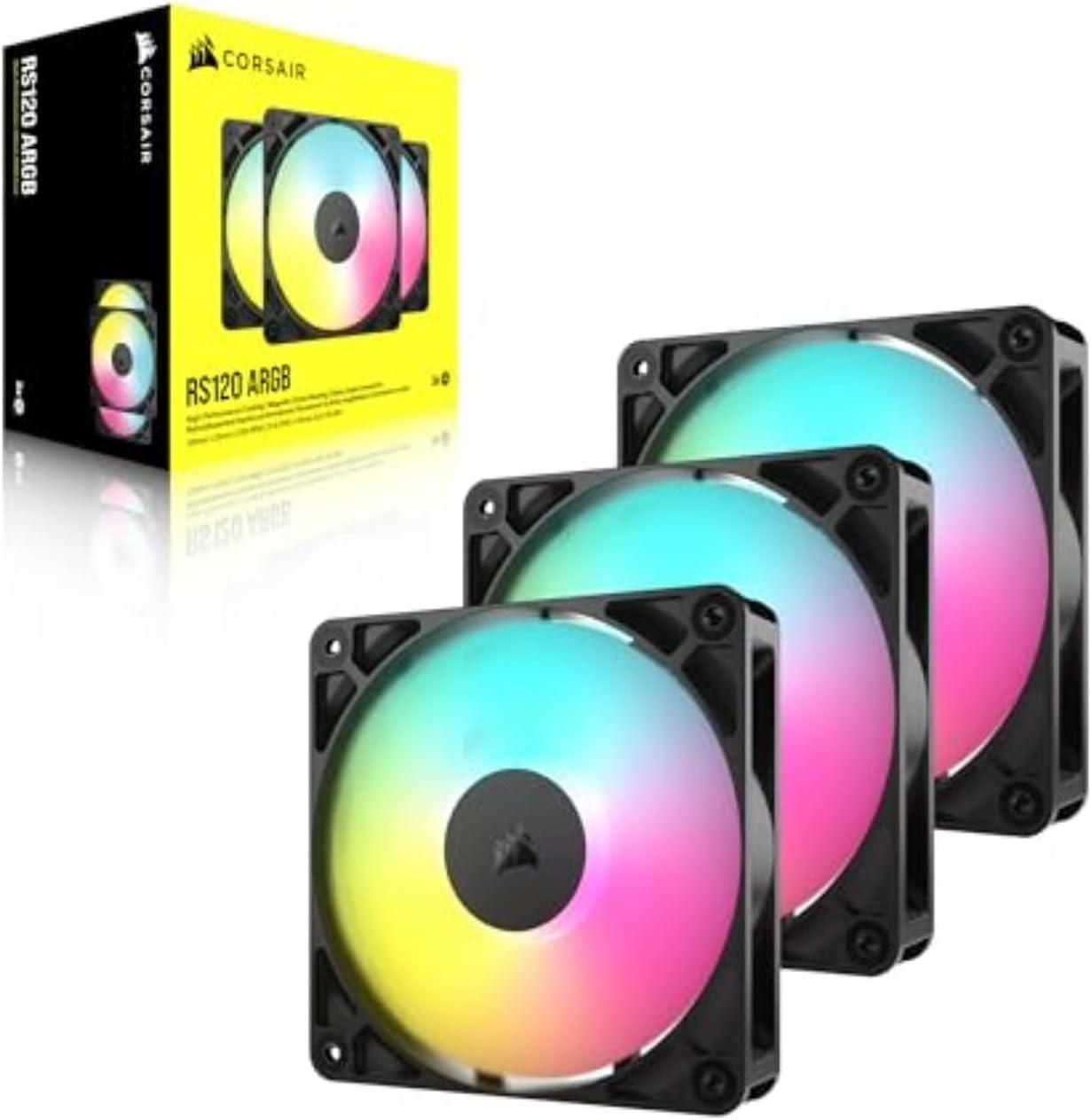 CORSAIR RS120 ARGB 120mm PWM Fans – Daisy-Chain Connection – Low-Noise – Magnetic Dome Bearing – Triple Pack – Black(Black)
