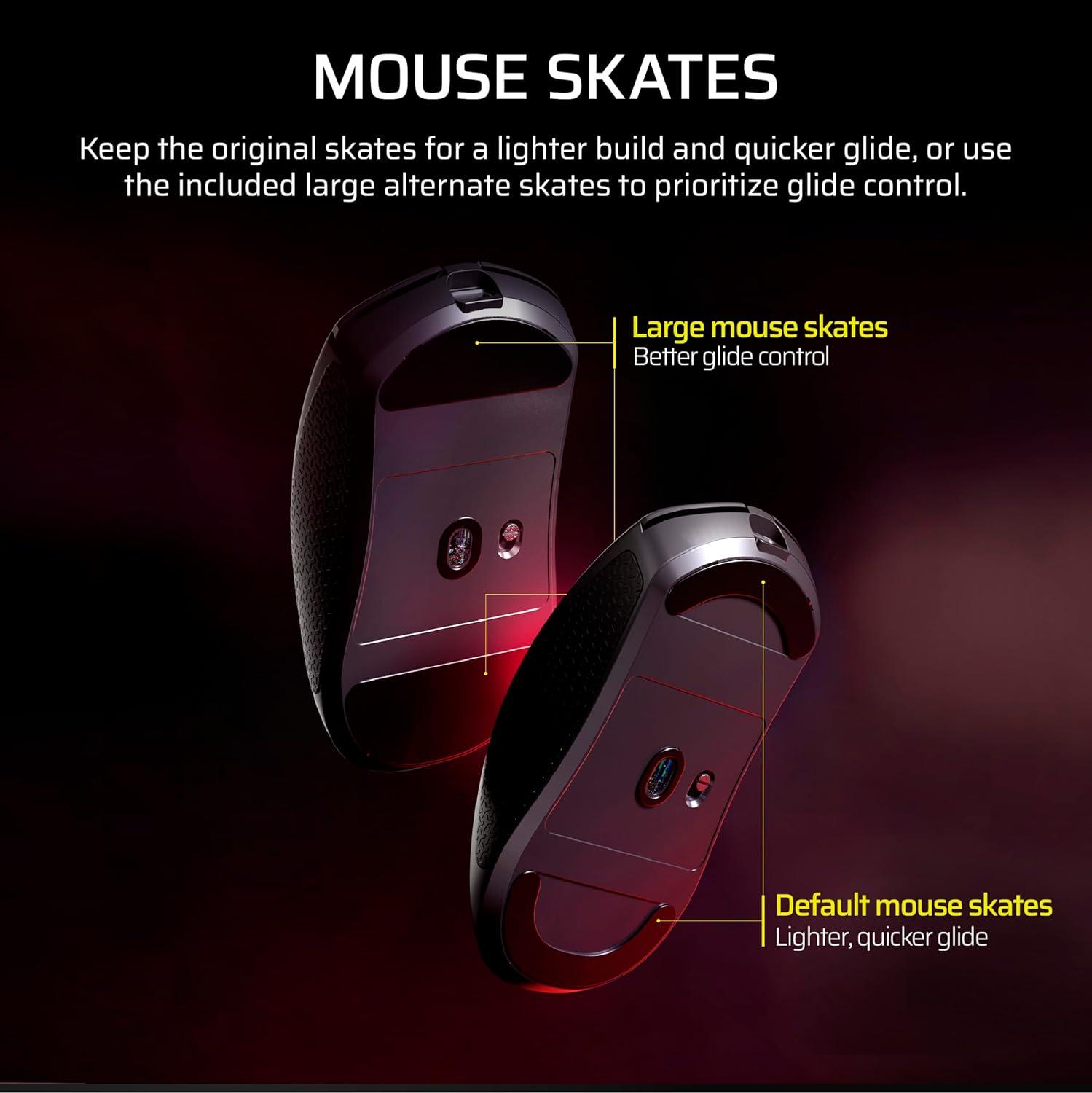 Get pro-level performance with the CORSAIR SABRE v2 PRO Ultralight Wireless Gaming Mouse. Weighing just 36g, it’s built for elite FPS players who demand speed, agility, and precision. With its 8,000Hz hyper-polling and CORSAIR MARKSMAN S 33,000 DPI sensor that tracks up to 750 IPS and 50G acceleration, SABRE v2 PRO delivers latency defying responsiveness and pixel-perfect control. The light weight, symmetrical shape, and up to 70 hours of 2.4GHz wireless freedom provide comfort and endurance to grind through competitive sessions. Customize your mouse with additional grip tape, replacement skates, and CORSAIR Web Hub.