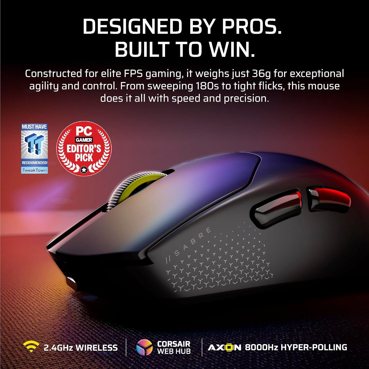 Corsair Sabre v2 PRO Ultralight FPS Wireless Gaming Mouse – 33,000 DPI, 36g Weight, 8,000Hz Hyper-Polling, Mechanical Switches, Up to 70-Hour Wireless Battery Life, Web Hub – Black(White)