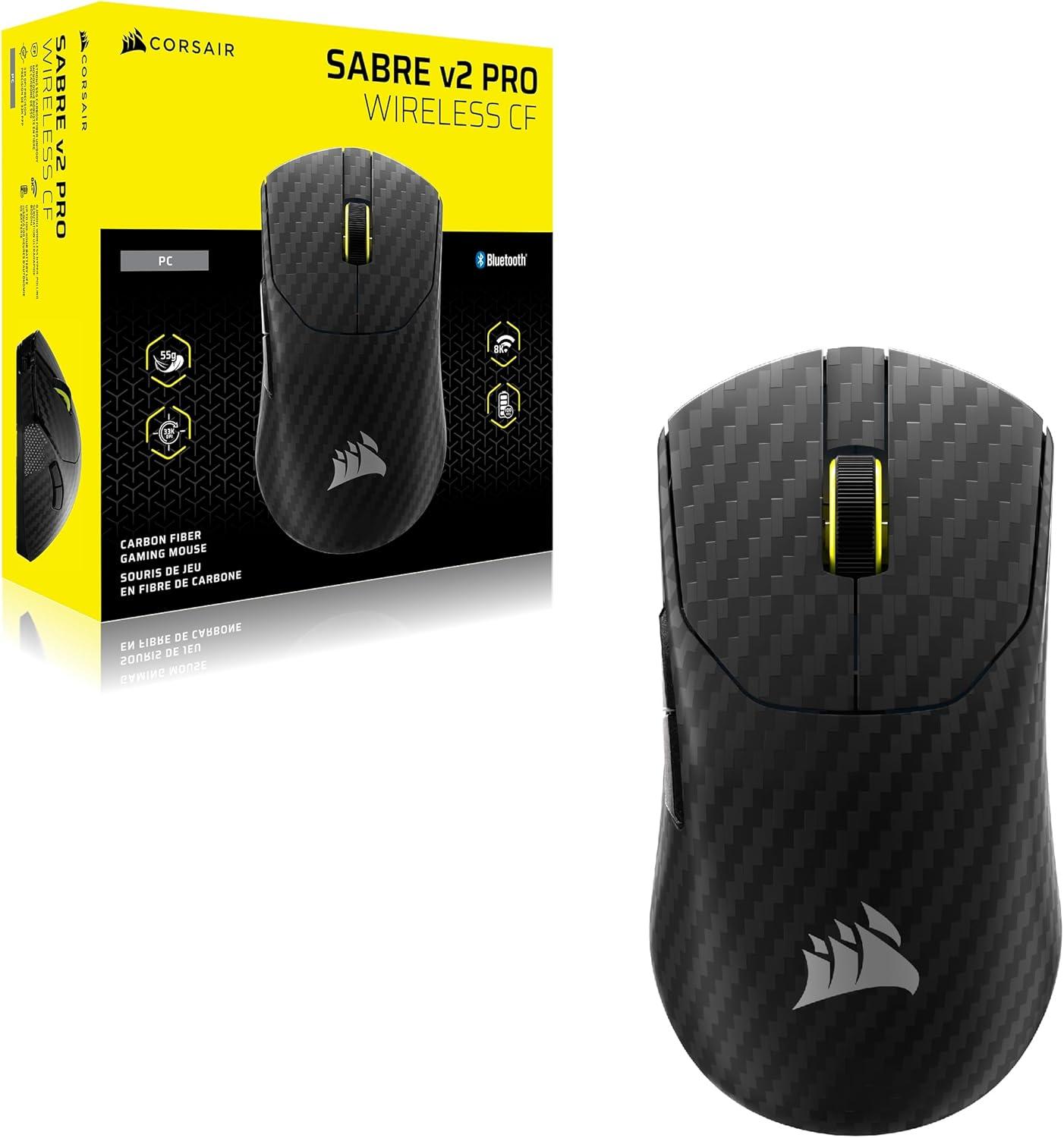 Corsair Sabre v2 PRO Wireless CF FPS Gaming Mouse – 33,000 DPI Marksman S Sensor, 8,000Hz Hyper-Polling, Carbon Fiber Unibody, Lightweight, Up to 120hr Battery – Black