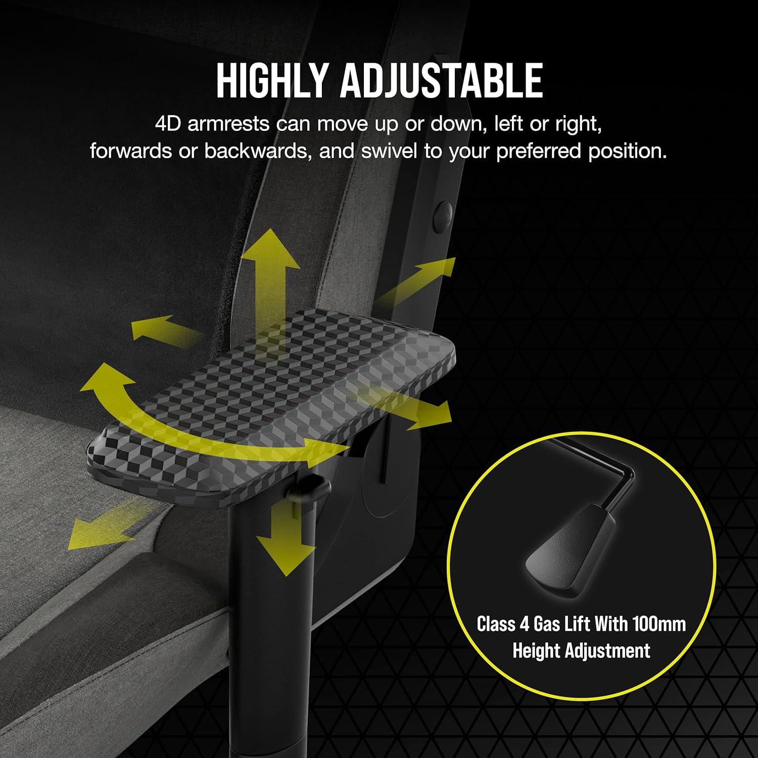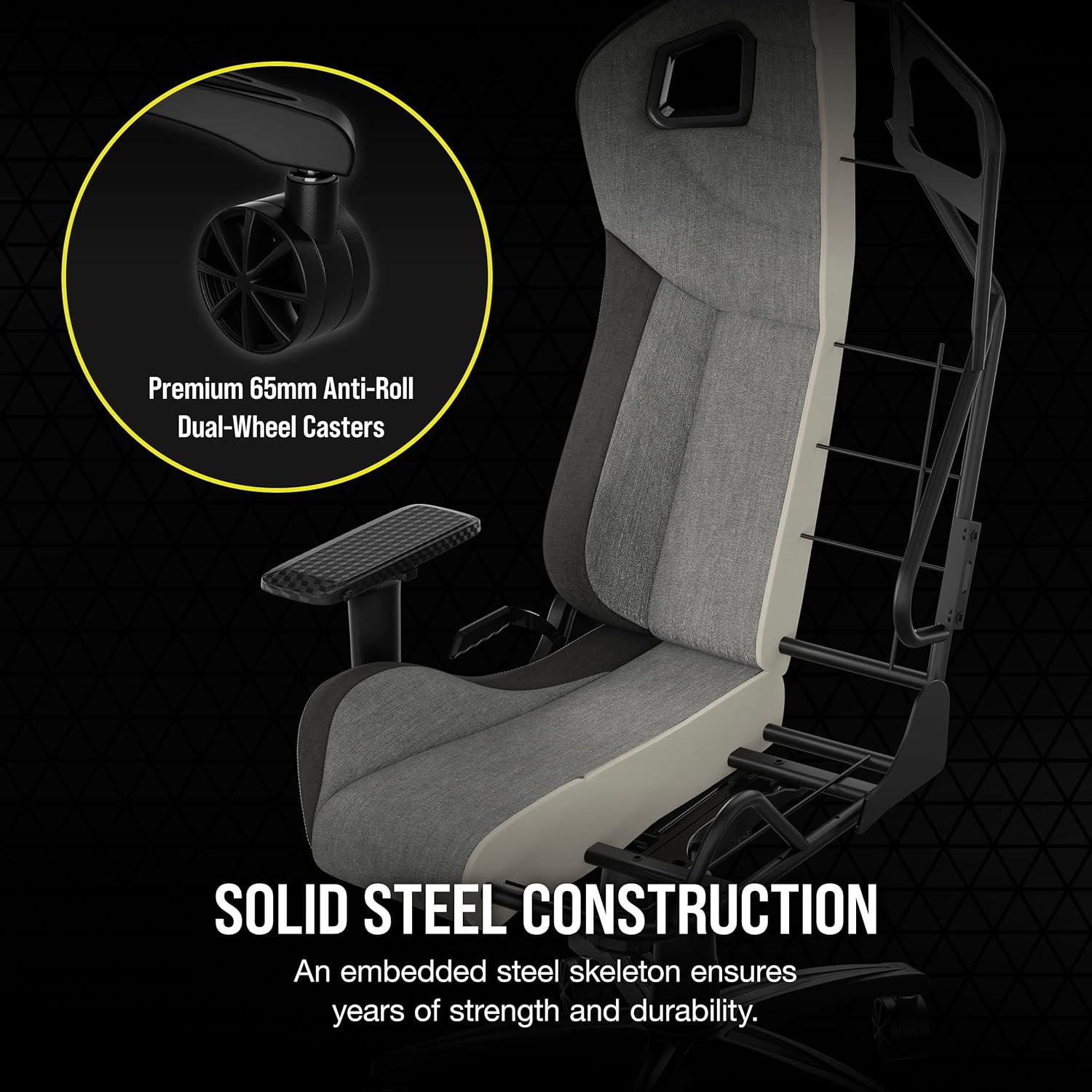 Corsair T3 Rush Fabric Gaming Chair (2023) – Racing-Inspired Design – Soft Fabric Exterior – Padded Neck Cushion – Memory Foam Lumbar Support – Adjustable Seat Height – Charcoal(Gray and Charcoal)