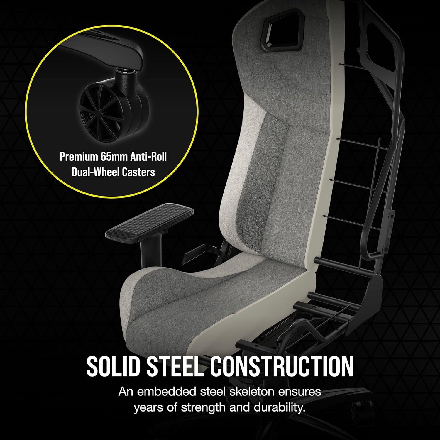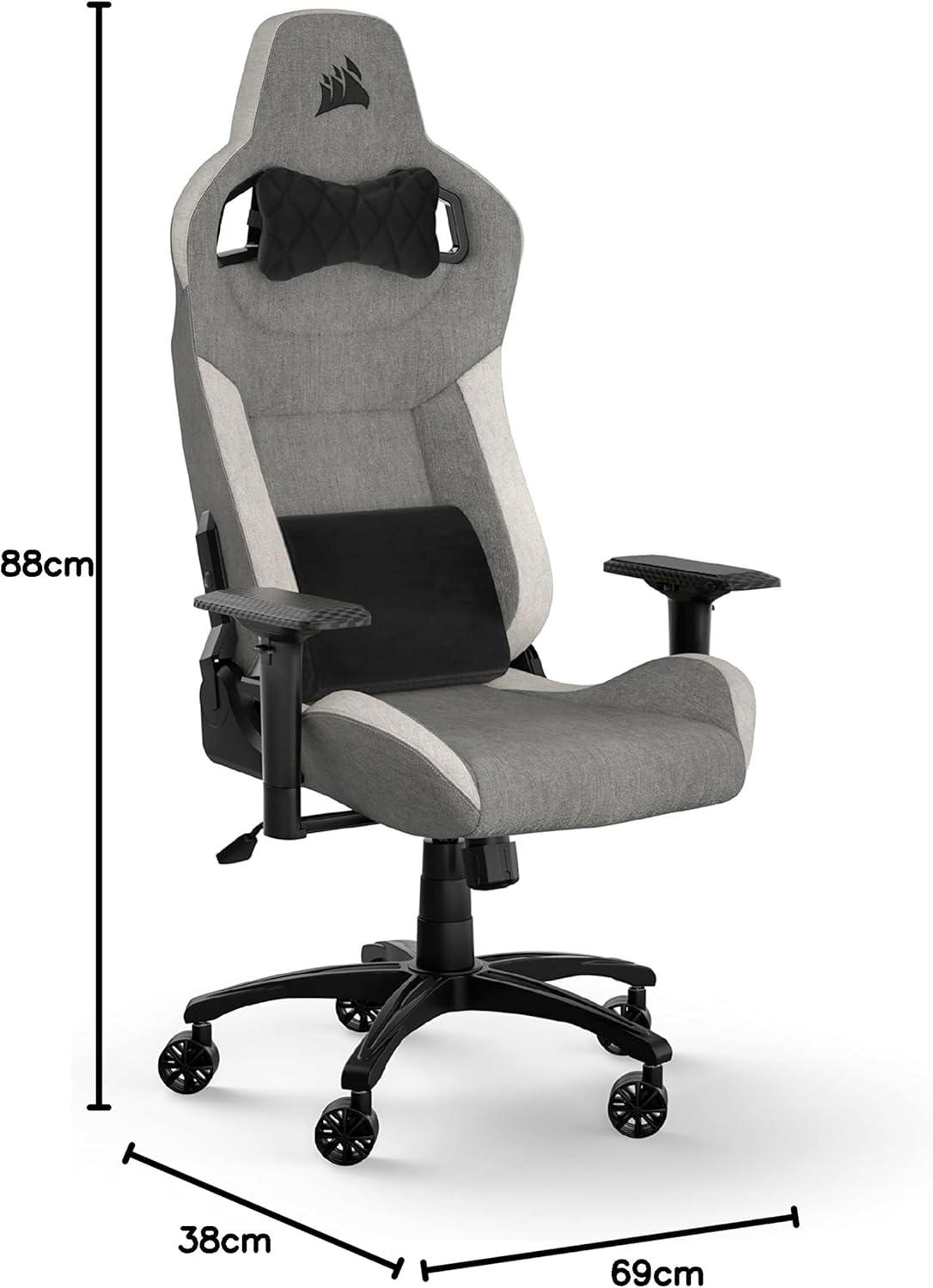 Corsair T3 Rush Fabric Gaming Chair (2023) – Racing-Inspired Design – Soft Fabric Exterior – Padded Neck Cushion – Memory Foam Lumbar Support – Adjustable Seat Height – Charcoal(Gray and White)