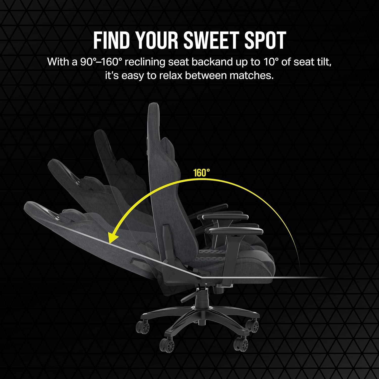Recline into comfort whether playing or working with the CORSAIR TC100 RELAXED Gaming Chair – Fabric, featuring a racing-inspired design with a wider seat surface. The chair’s plush exterior lets you play in cool comfort. With both an included adjustable lumbar support pillow and detachable memory foam neck pillow, you have all the support you need while gaming. The seat back reclines from 90° to 150°, so you can lean way back after a hard-won victory. After setting the chair up for your exact needs with a class 4 gas lift with 100mm height range and adjustable armrests, the TC100 RELAXED makes it easy to sit back and game on.