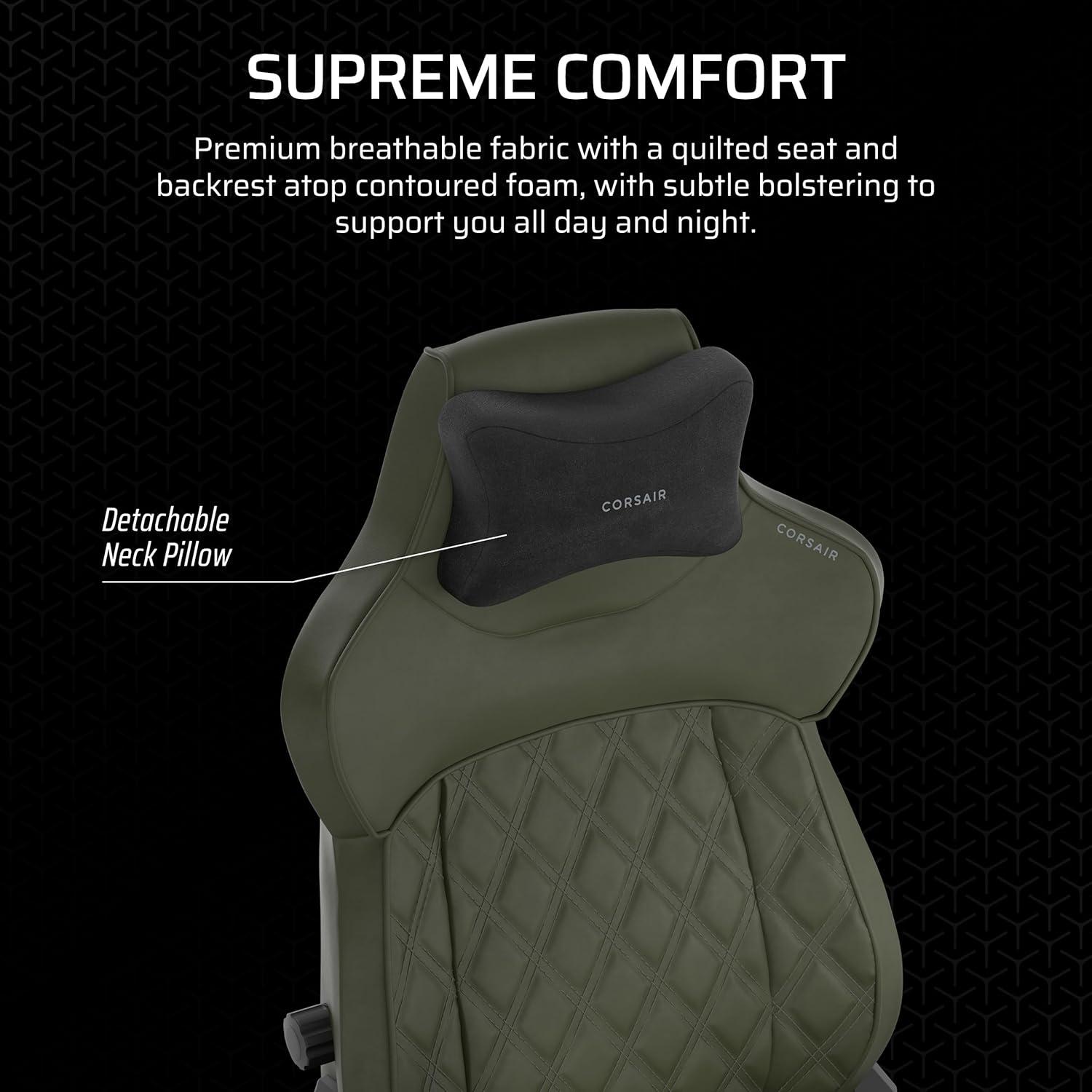 Corsair TC500 Luxe Gaming Chair – Premium Breathable Fabric – Wide Seat – Five-Way Adjustable Armrests – Adjustable Built-in Lumbar Support – 90-160 Degree Recline – Shadow(Green)