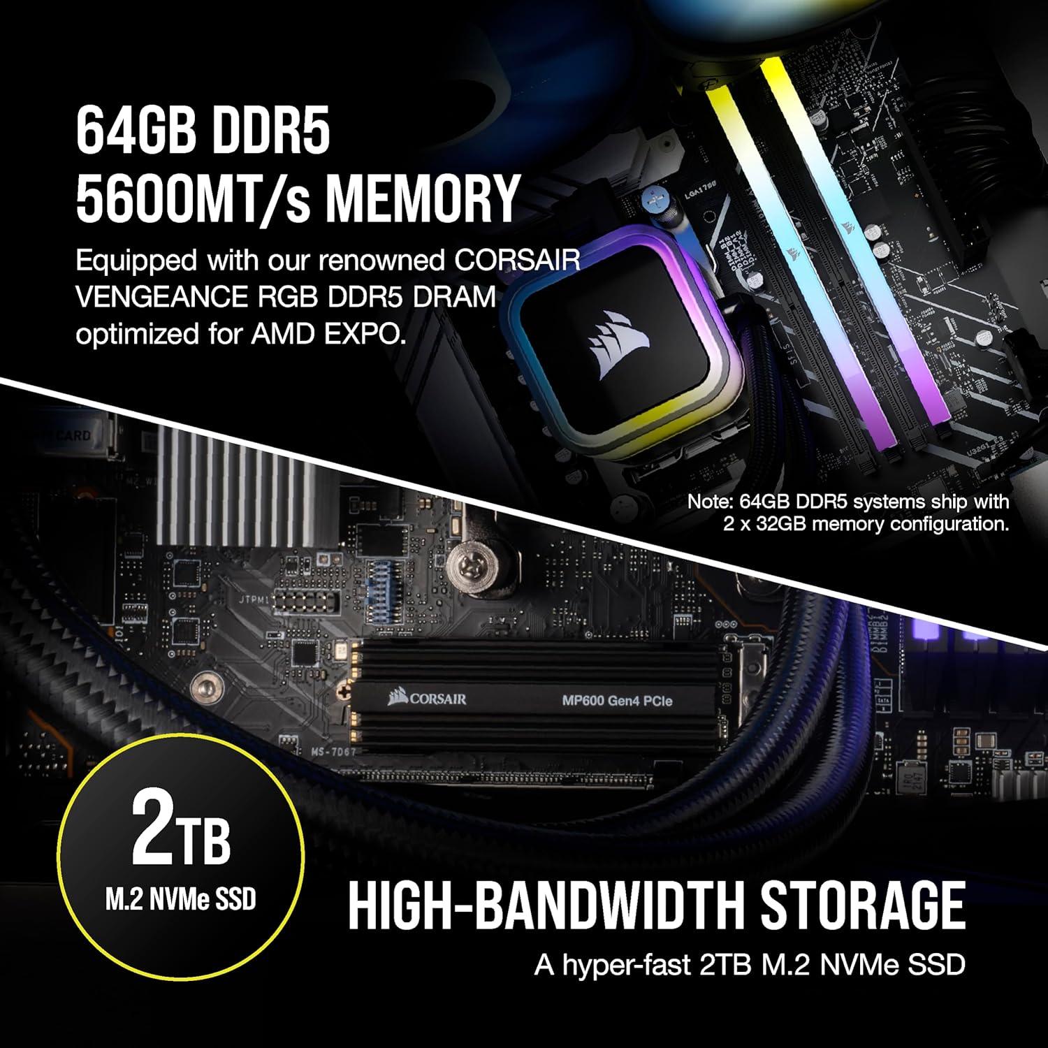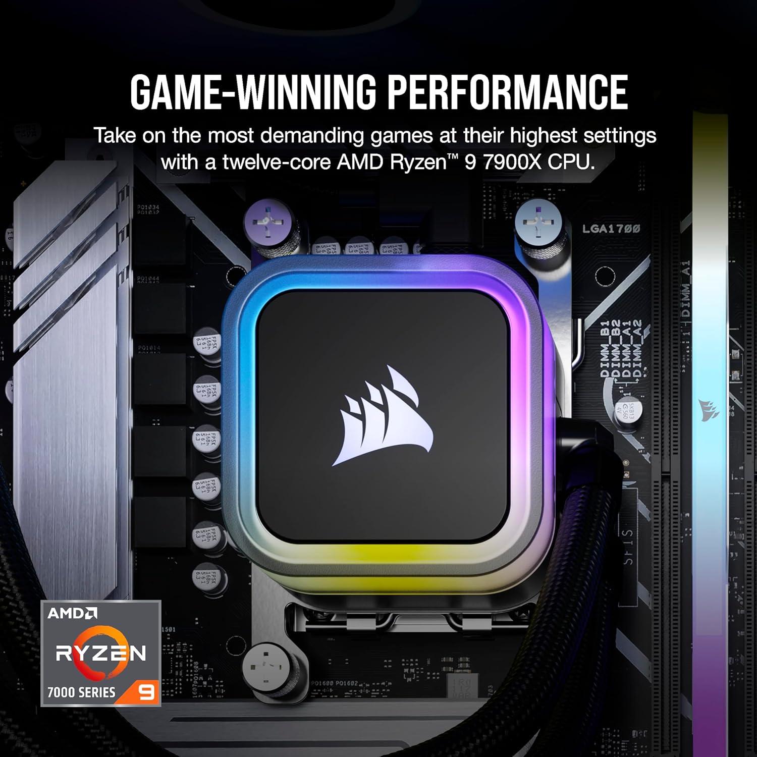 Corsair Vengeance a7400 Series Gaming PC – Liquid Cooled AMD Ryzen 5 9600X CPU – NVIDIA GeForce RTX 4060 GPU – 32GB Vengeance RGB DDR5 Memory – 1TB M.2 SSD – Black(Ryzen 9 7900X / 4090)