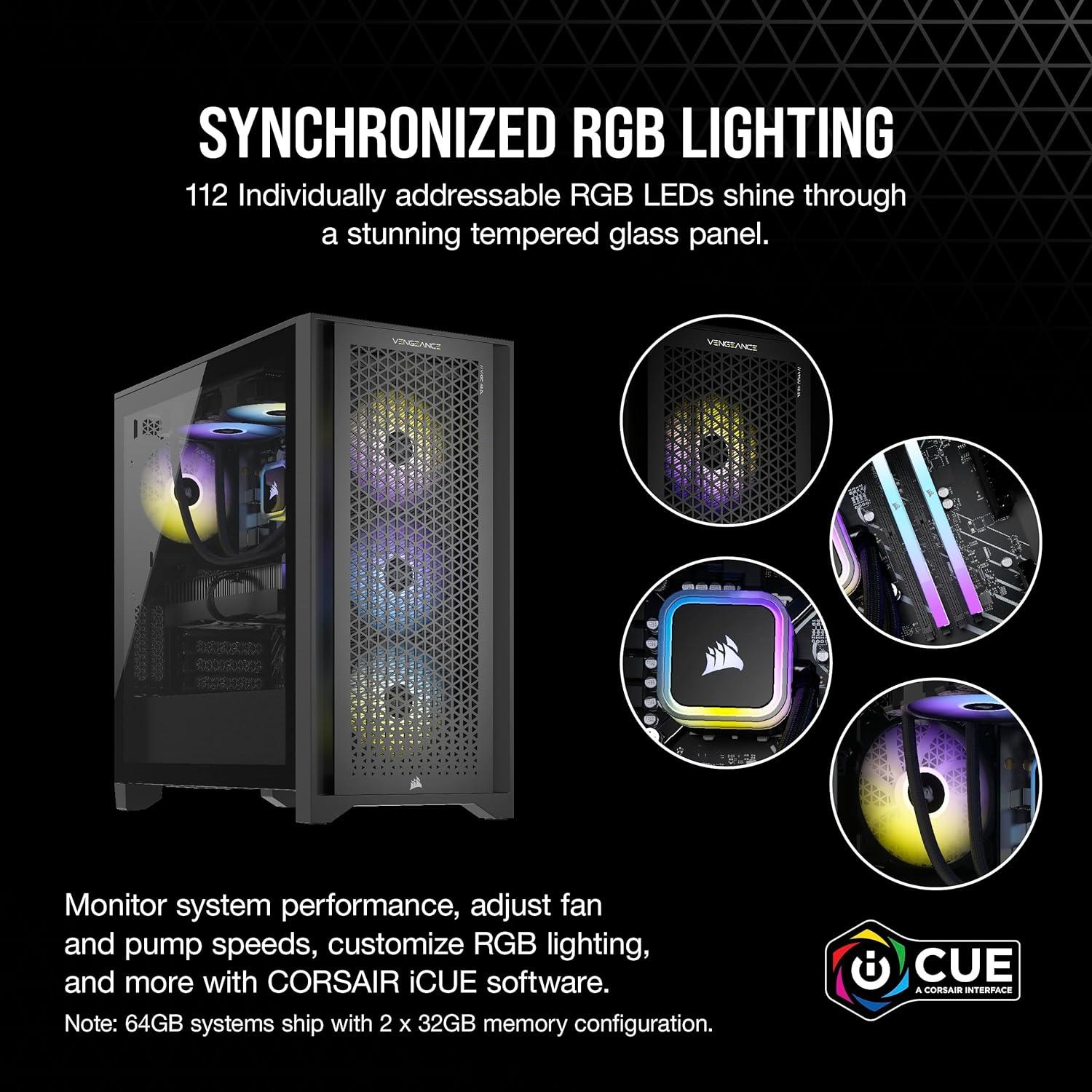 Corsair Vengeance a7400 Series Gaming PC – Liquid Cooled AMD Ryzen 5 9600X CPU – NVIDIA GeForce RTX 4060 GPU – 32GB Vengeance RGB DDR5 Memory – 1TB M.2 SSD – Black(i9 13900K / 4090)