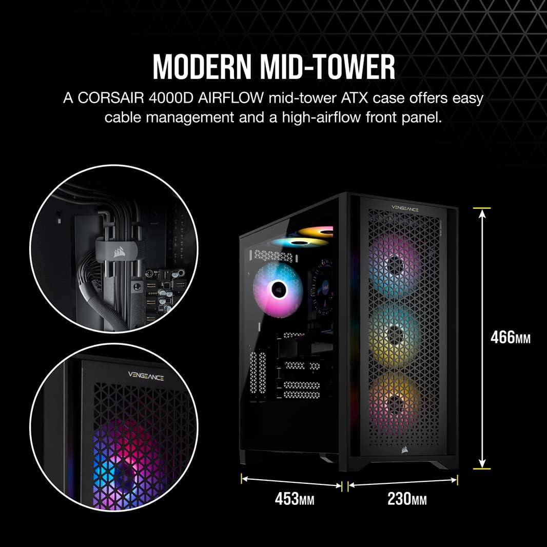 Corsair Vengeance a7400 Series Gaming PC – Liquid Cooled AMD Ryzen 5 9600X CPU – NVIDIA GeForce RTX 4060 GPU – 32GB Vengeance RGB DDR5 Memory – 1TB M.2 SSD – Black(i5 12600K / 3060 Ti)